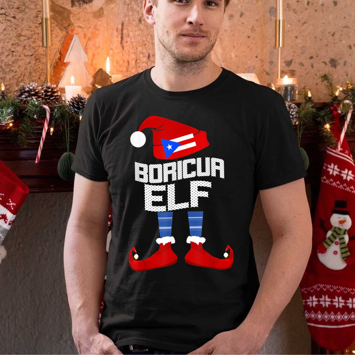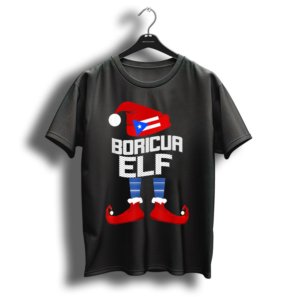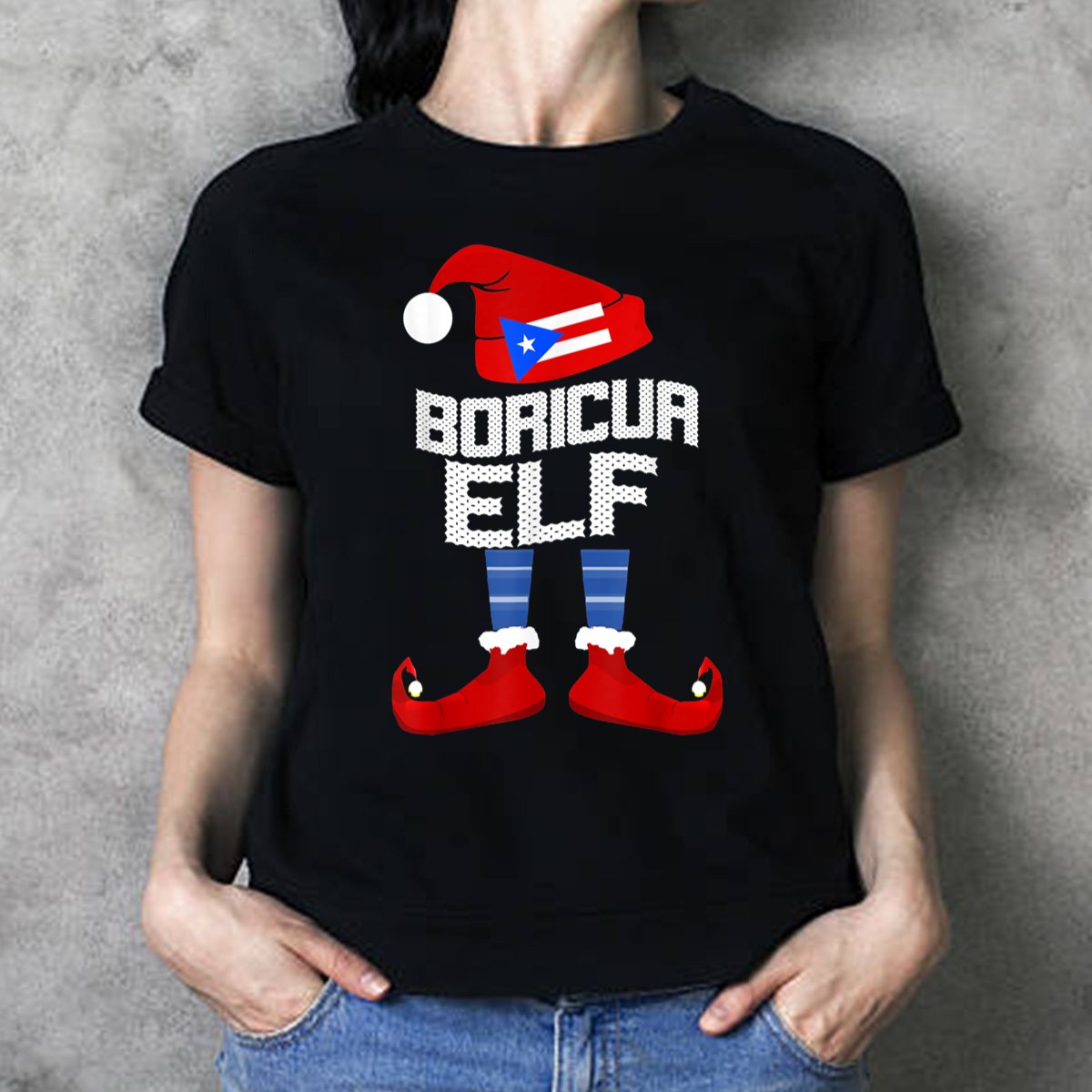 Celebrate the festive spirit and showcase your Puerto Rican pride with our Boricua Elf T-Shirt! This fun and vibrant tee features a playful elf design donning a Christmas hat, red shoes, and striped socks, making it the perfect outfit for holiday gatherings, themed events, or casual daily wear. Crafted for comfort and style, this shirt is a must-have for anyone looking to spread joy and cheer during the holiday season while honoring their heritage.
