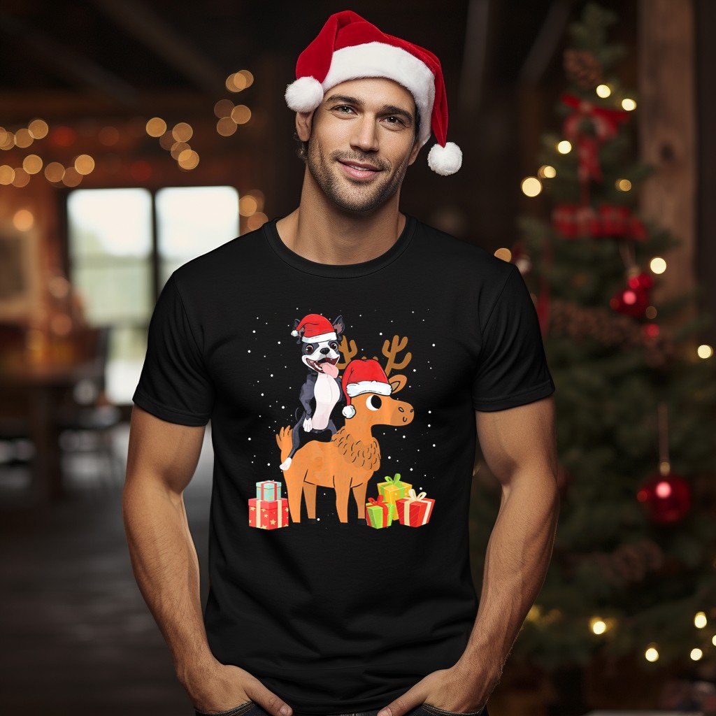 Celebrate the festive season with our Boston Terrier And Deer Christmas Santa Hats And Gifts T-Shirt! This delightful graphic tee is perfect for dog lovers and holiday enthusiasts alike, making it an ideal choice for casual gatherings, themed events, or simply spreading cheer during daily wear. With its unique fan-made design printed in the USA, this shirt is sure to bring a smile to everyone around you!