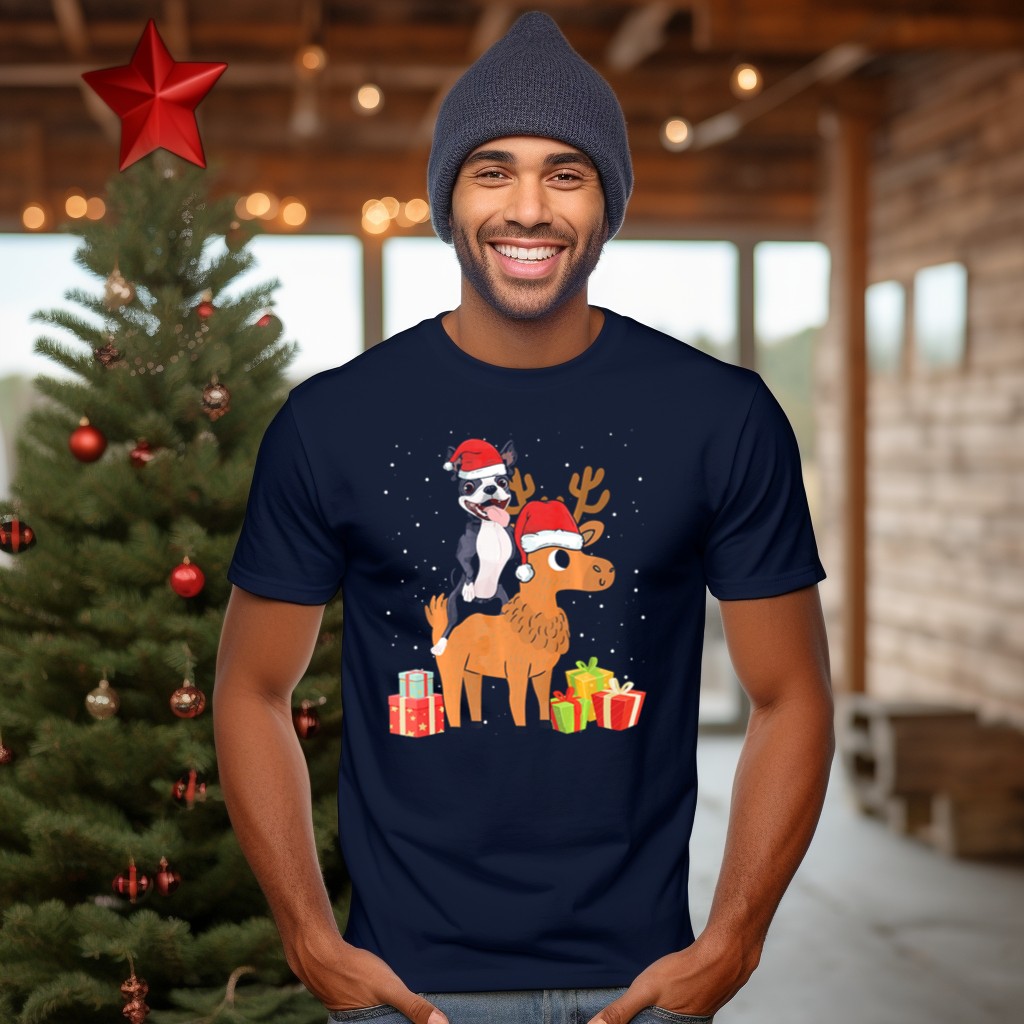 Be the first to review “Boston Terrier And Deer Christmas Santa Hats And Gifts T-Shirt”