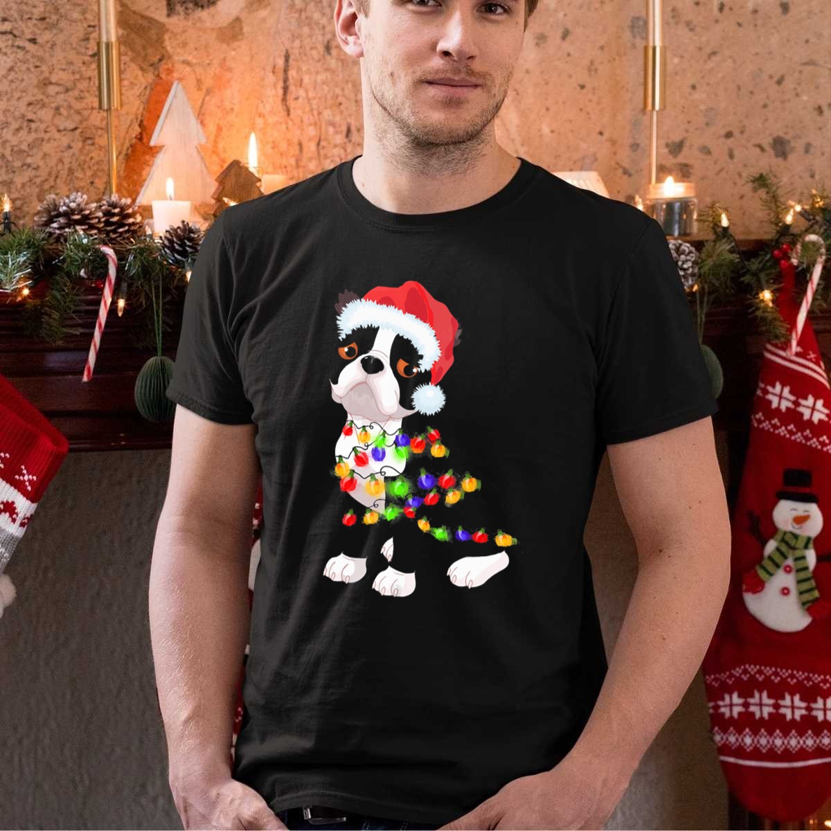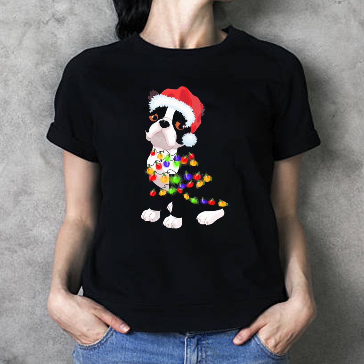Celebrate the festive season with our Boston Terrier Christmas Lights Santa Hat T-Shirt! This playful and adorable design is perfect for dog lovers and anyone looking to add a touch of holiday cheer to their wardrobe. Ideal for casual outings, themed events, or simply lounging at home, this shirt combines comfort and style, making it a must-have for all-season wear. Show off your love for Boston Terriers and the holiday spirit with this fan-made design, proudly printed in the USA!