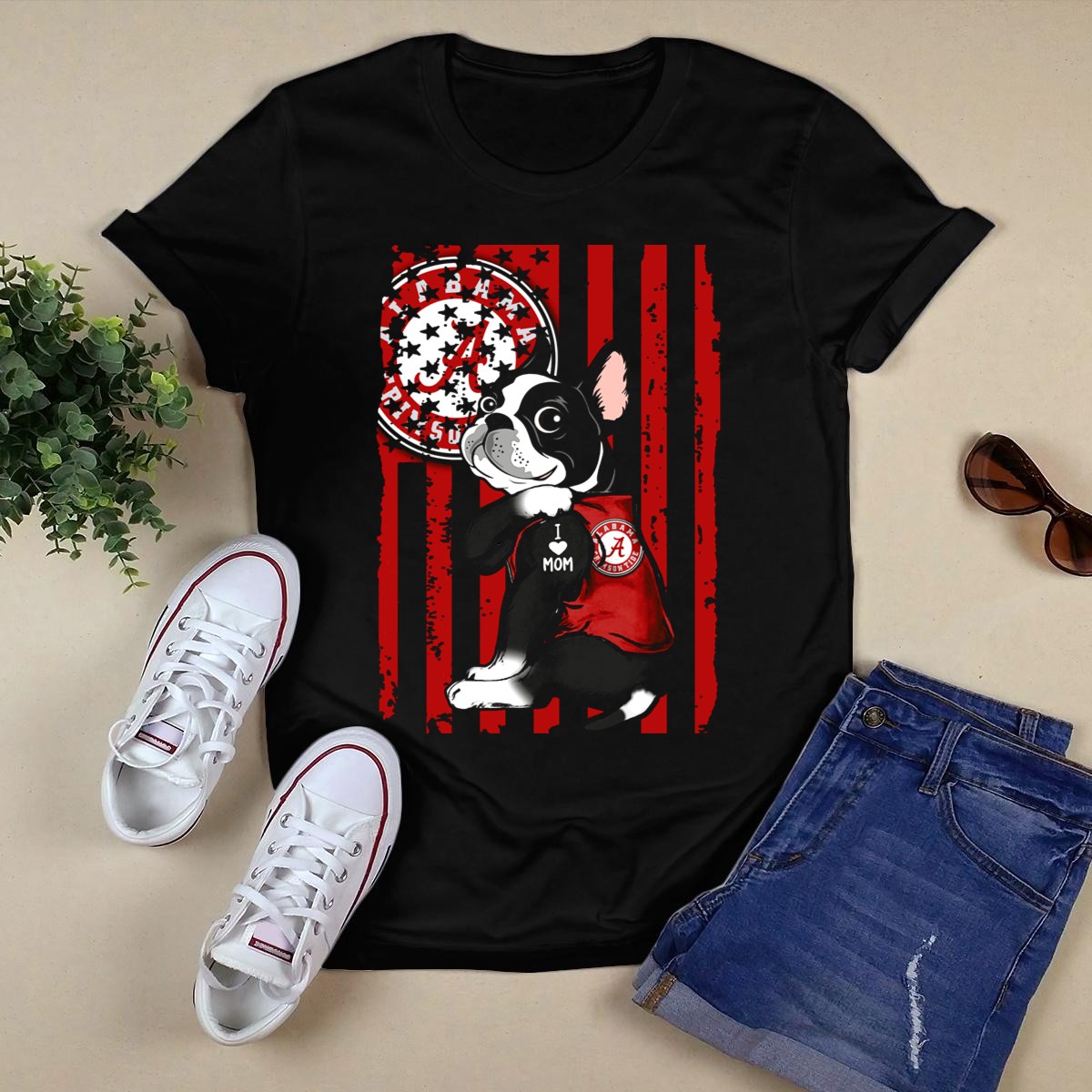 Show your love for your mom and your favorite team with our Boston Terrier I Love Mom Alabama Crimson Tide Fan T-Shirt! This playful design is perfect for proud fans and dog lovers alike, making it an ideal choice for casual outings, themed events, or just lounging around at home. Crafted with comfort in mind, this shirt combines style with a heartfelt message, celebrating both your furry friend and your team spirit!