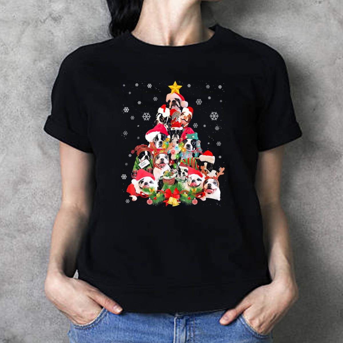 Celebrate the festive season in style with our Boston Terriers Christmas Tree Snowflakes And Santa Hats T-Shirt! Perfect for dog lovers and holiday enthusiasts alike, this fun and playful design brings together the charm of Boston Terriers with the joy of Christmas. Ideal for casual gatherings, themed events, or simply showcasing your love for your furry friends, this shirt is a delightful addition to your wardrobe. Plus, it’s fan-made and printed in the USA, ensuring a unique piece that stands out!