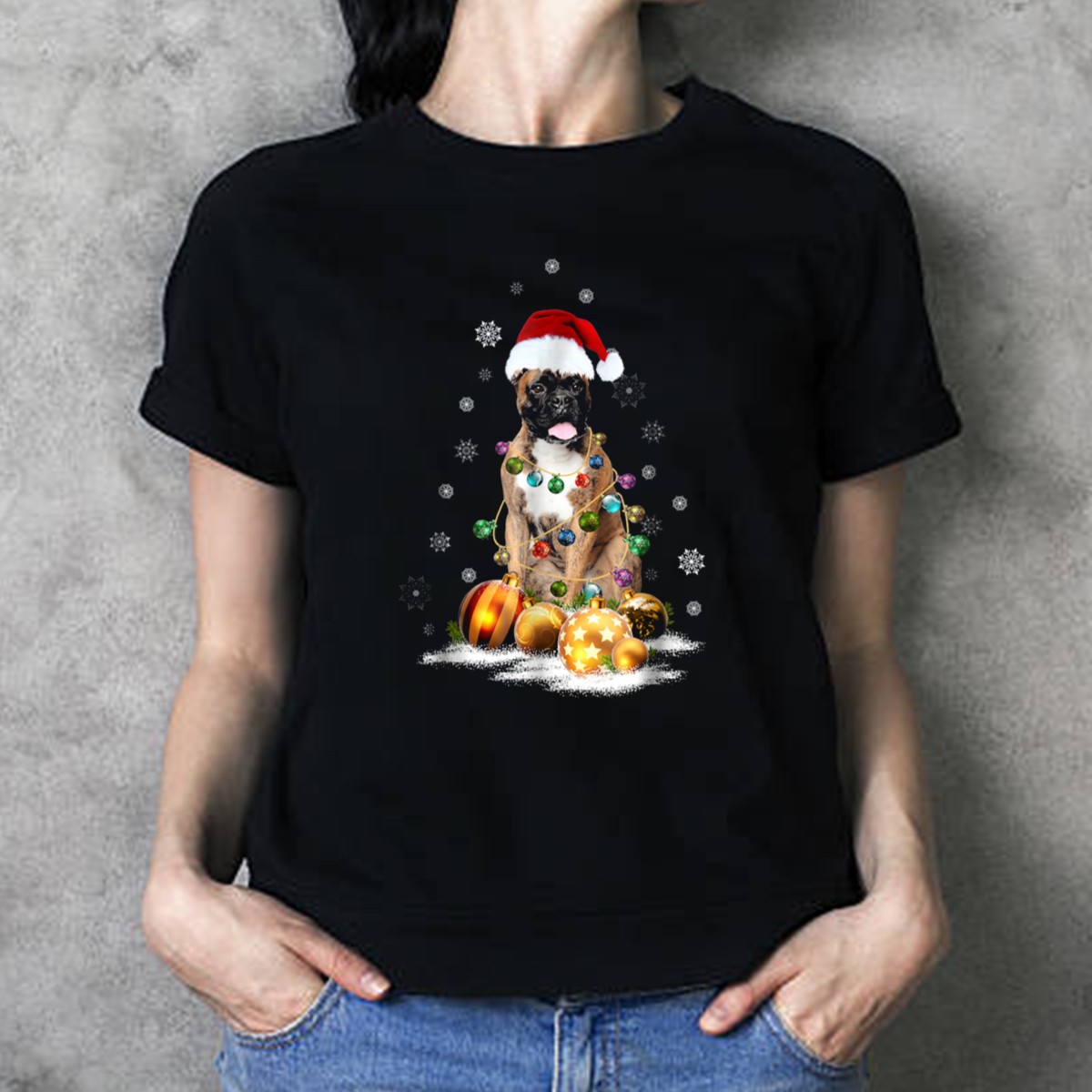 Get ready to spread some holiday cheer with our Boxer Christmas Dog T-Shirt featuring an adorable pup in a Santa hat! Perfect for dog lovers and festive gatherings, this fan-made design captures the playful spirit of the season. Whether you’re attending a themed event or simply enjoying daily wear, this t-shirt is sure to bring smiles and compliments wherever you go. Plus, it’s printed in the USA, making it a unique addition to your holiday wardrobe!