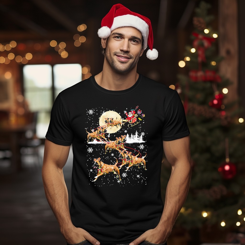 Be the first to review “Boxer Reindeer Santa Sleigh Christmas Dogs Snowflake Scene T-Shirt”