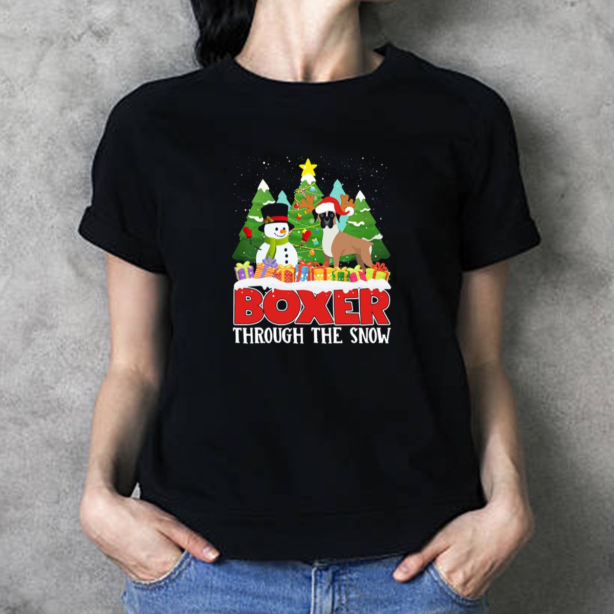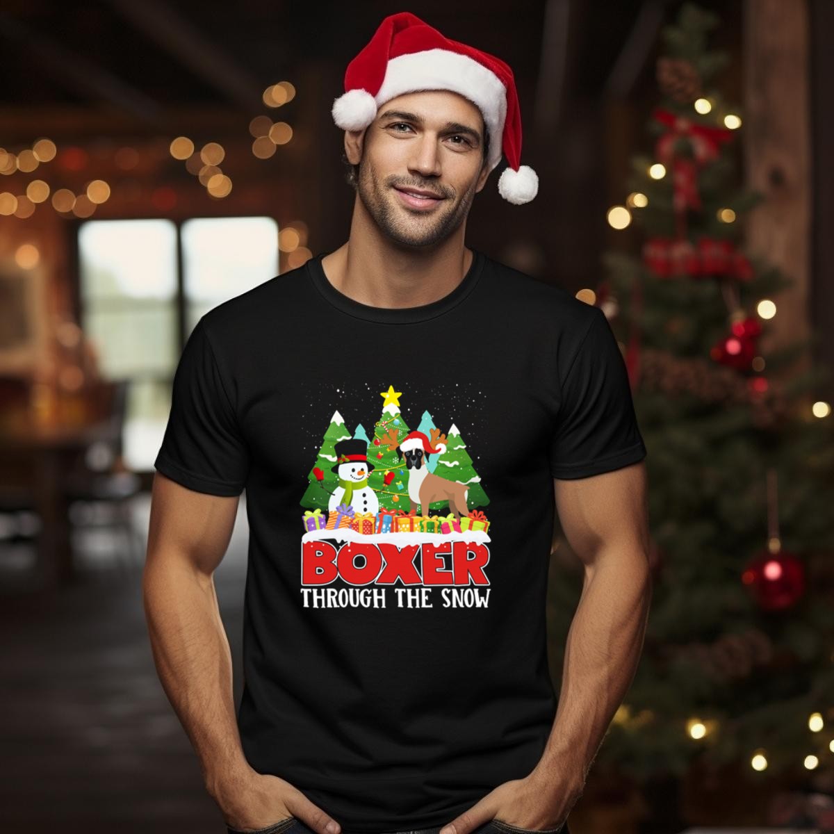 Boxer Through The Snow Xmas Christmas Boxer Dog T-Shirt