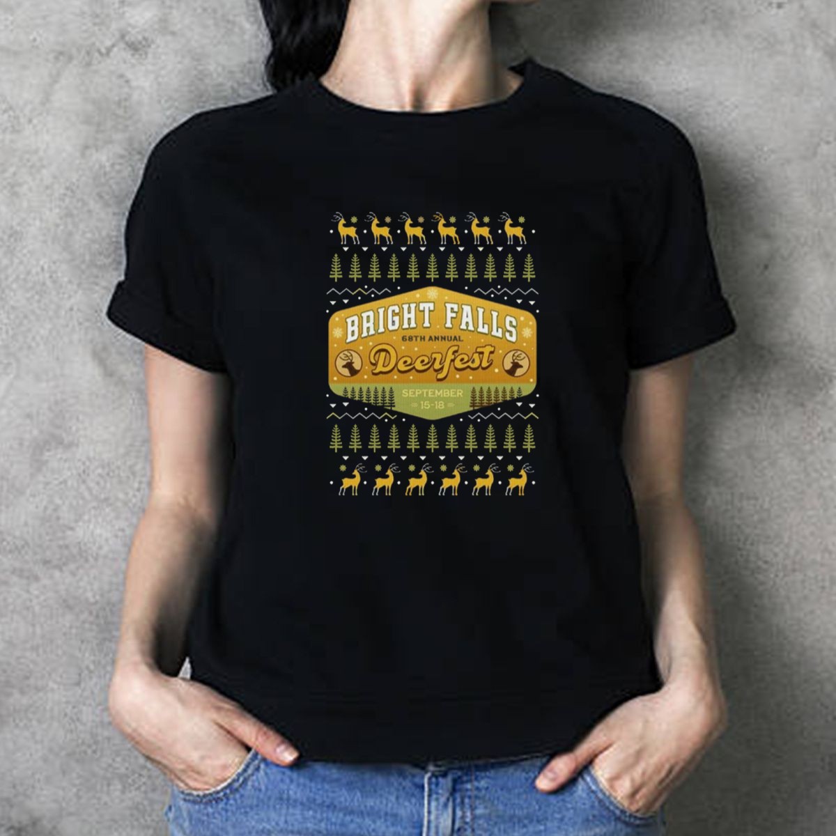 Celebrate the spirit of the season with our Bright Falls 68th Annual Deerfest T-Shirt! Perfect for fans of festive fun, this shirt captures the essence of community gatherings and themed events. Whether you’re attending the local Deerfest or just enjoying a casual day out, this unique, fan-made design will make you stand out while keeping you comfortable. Printed with care in the USA, it blends holiday cheer with everyday style!