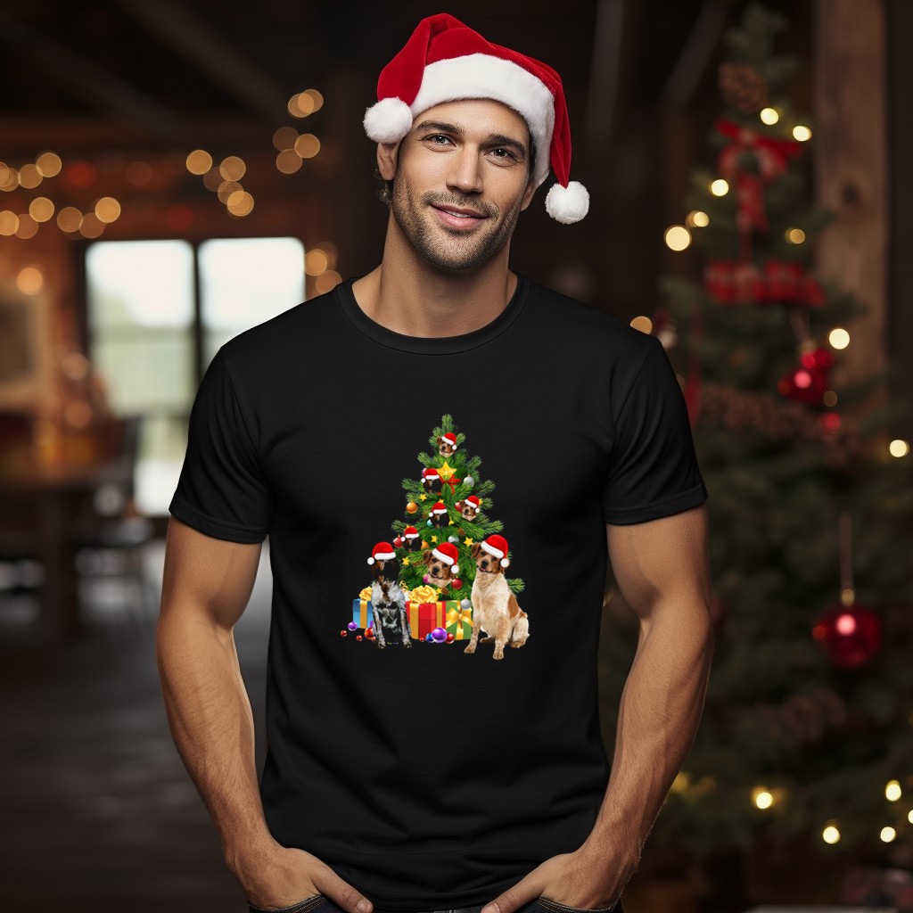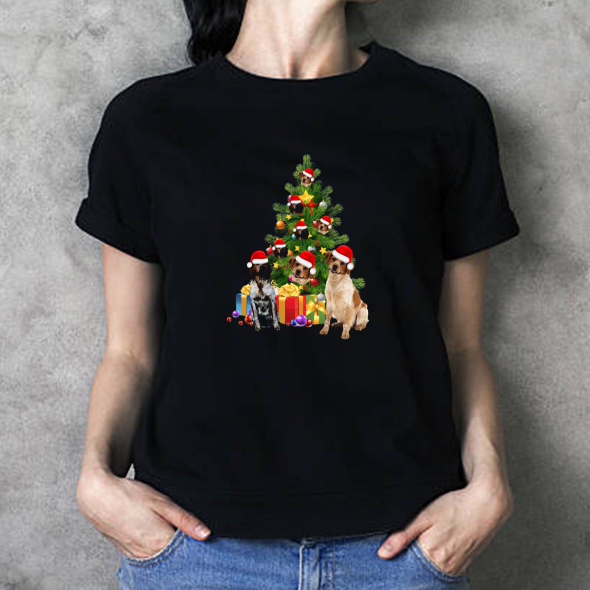 Be the first to review “Brittany Spaniel Dogs With Santa Hats Around Christmas Tree T-Shirt”
