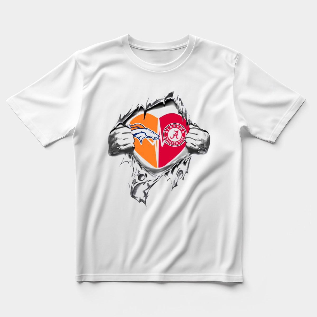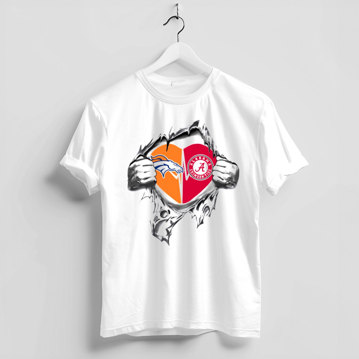 Show your unwavering support for the Alabama Crimson Tide with our Broncos Alabama Crimson Tide Heart With Ripped Effect T-Shirt. This fan-made design is perfect for die-hard fans looking to showcase their love for the team in a stylish and unique way. Whether you’re heading to a game, attending a themed event, or simply enjoying a casual day out, this shirt combines comfort and personality, making it a must-have for any Crimson Tide enthusiast.