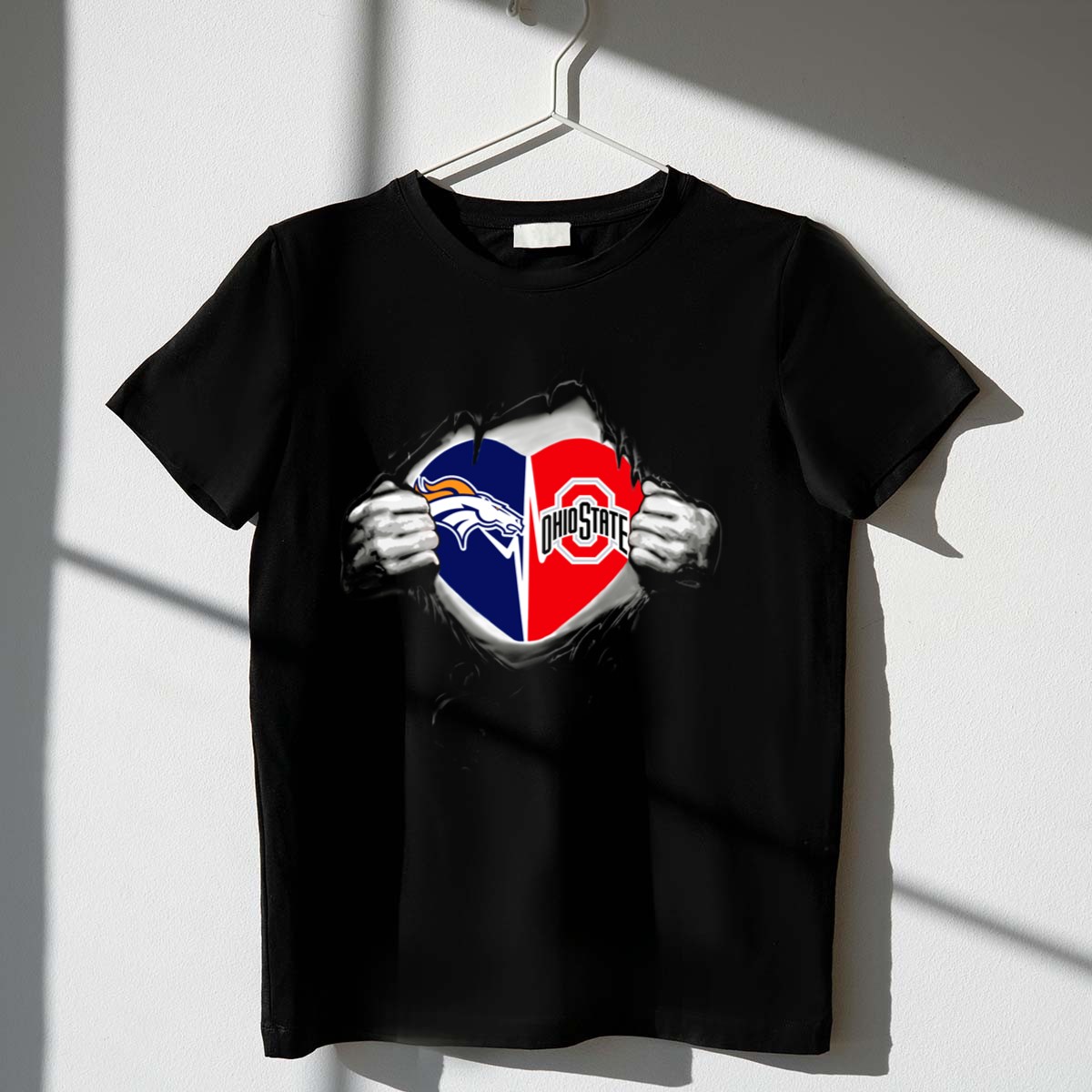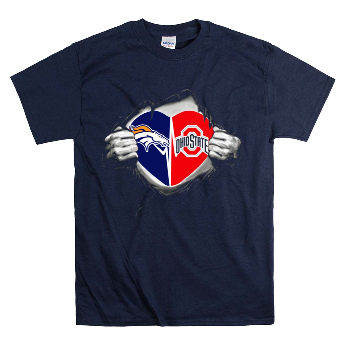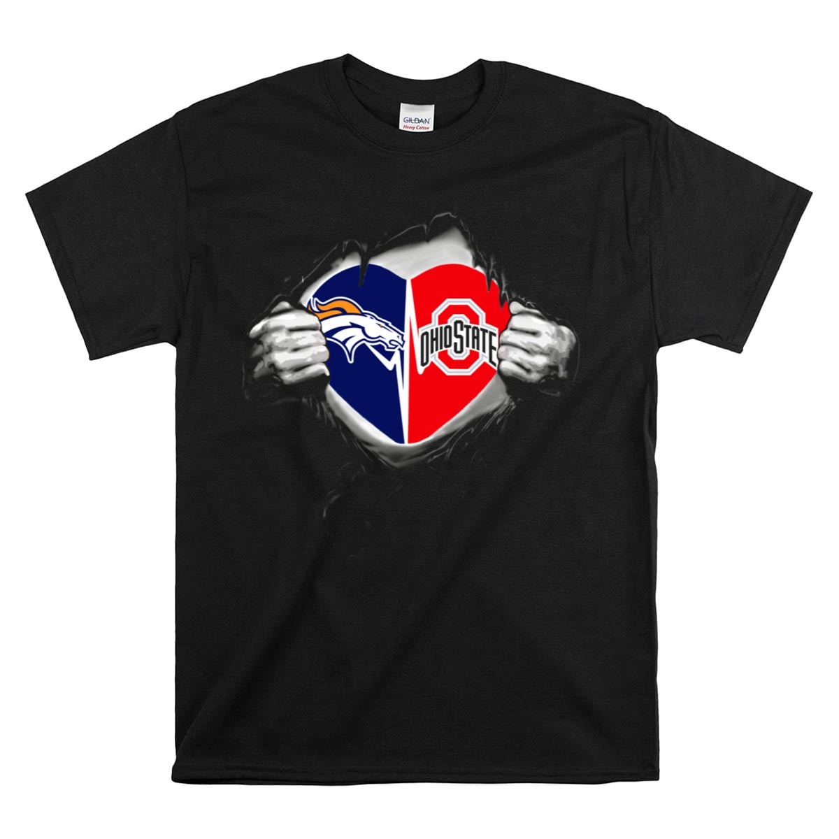 Show off your team spirit with our Broncos Ohio State Buckeyes Heart Logo Fusion T-Shirt! This fan-made design is perfect for die-hard Buckeyes supporters who want to combine comfort and style while cheering on their favorite team. Whether you’re at a game, hanging out with friends, or enjoying a casual day out, this shirt is a must-have for any Ohio State fan looking to make a bold statement.
