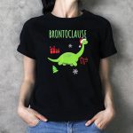 Get ready to bring some festive fun to your holiday celebrations with our Brontoclause Christmas Dinosaur T-Shirt! This whimsical tee features a playful design of a cheerful dinosaur donning a Santa hat, perfect for dinosaur lovers and holiday enthusiasts alike. Ideal for casual wear, themed events, or just spreading some cheer during the holiday season, this shirt is sure to become a favorite in your wardrobe. Plus, it’s proudly printed in the USA, making it a unique addition to your festive attire!
