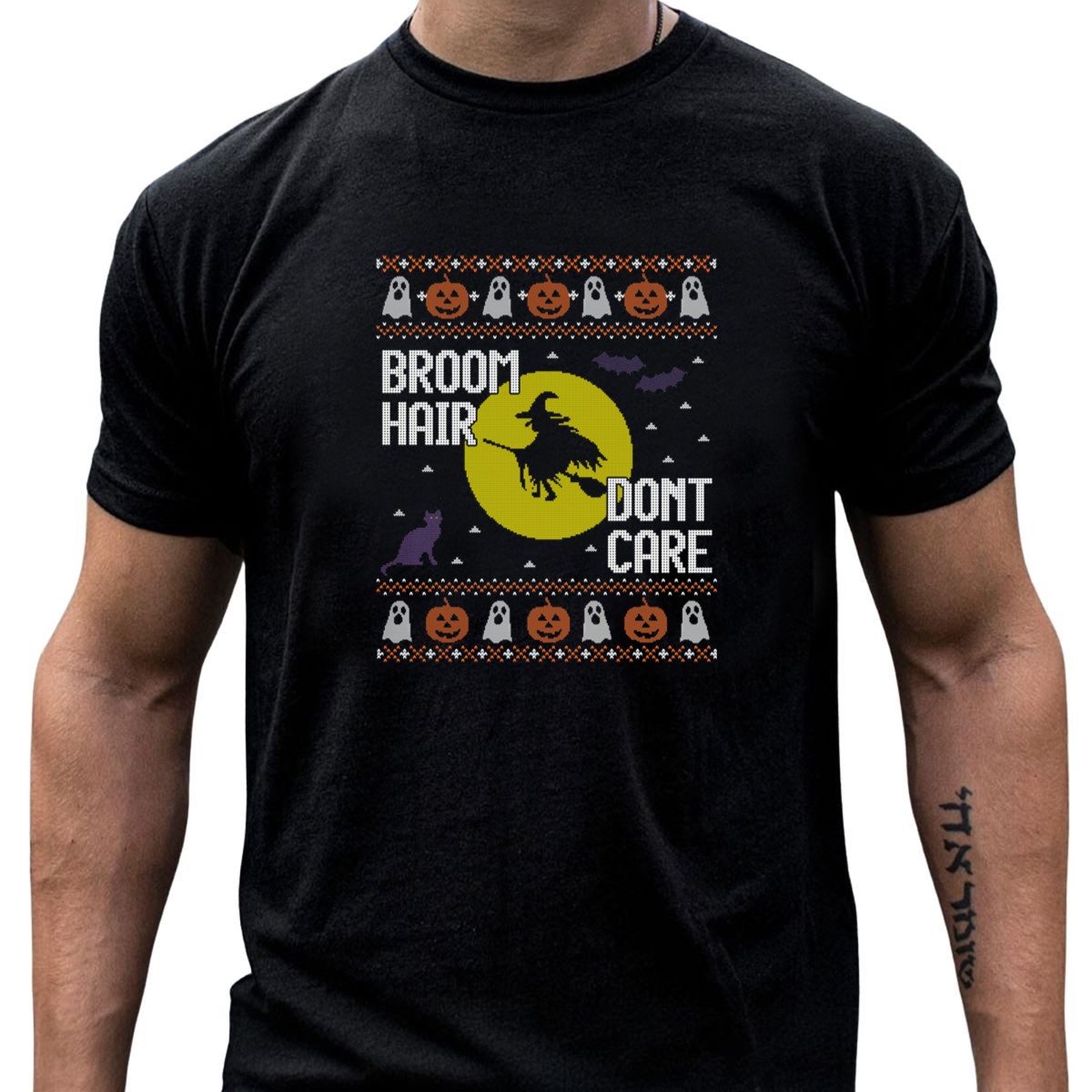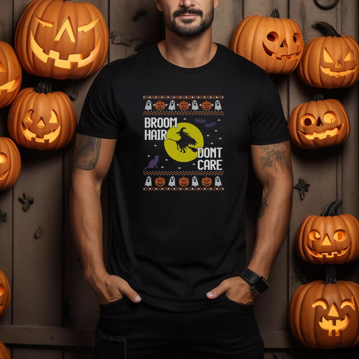 Embrace the spooky season with our Broom Hair Don’t Care Ugly Halloween Witch Pumpkin Ghost Cat Bat T-Shirt! Perfect for witches, ghouls, and Halloween enthusiasts, this playful tee adds a touch of fun to your casual wear. Whether you’re heading to a themed party, trick-or-treating, or simply enjoying a cozy evening, this shirt is a must-have for all your Halloween adventures. The fan-made design, printed in the USA, ensures that you stand out in style!