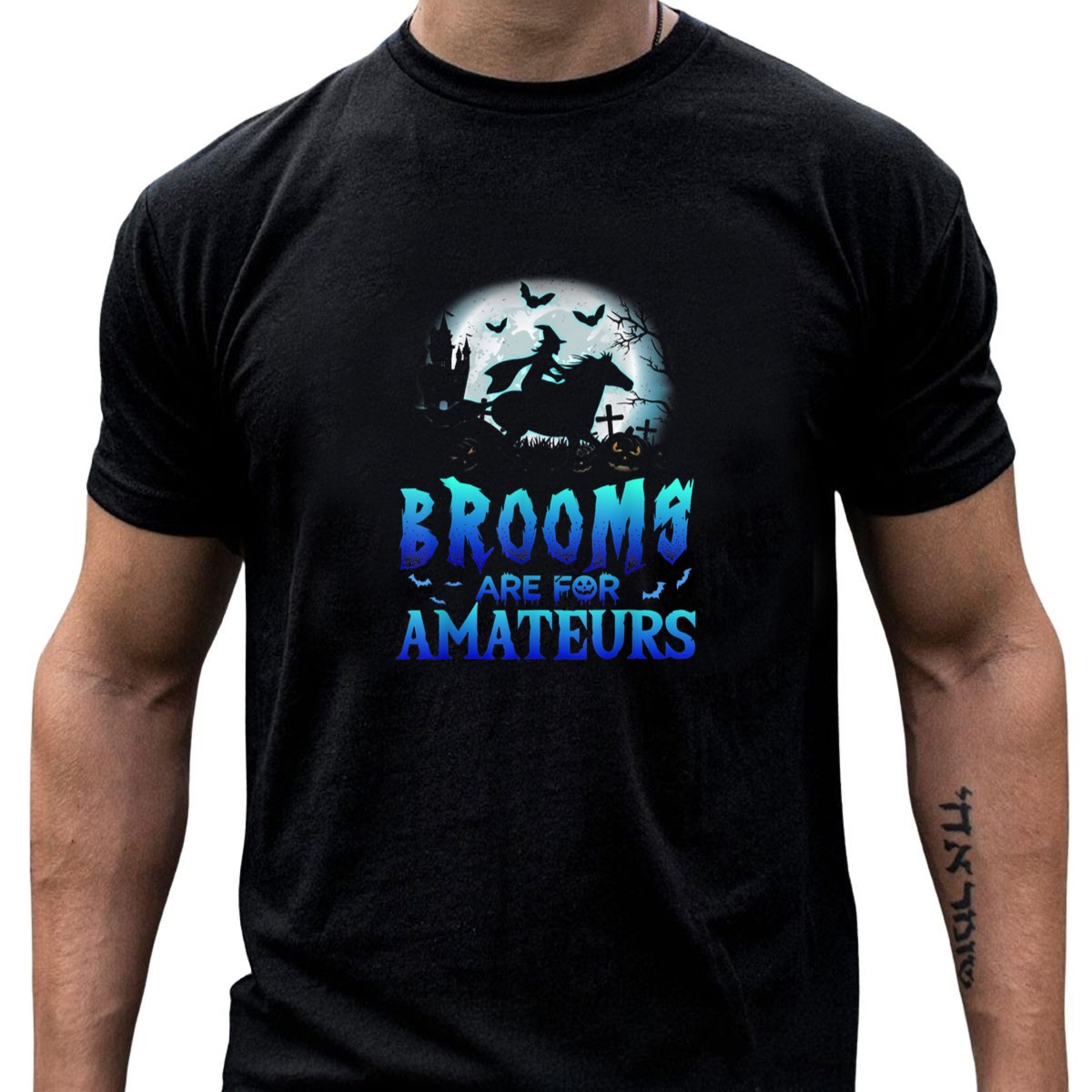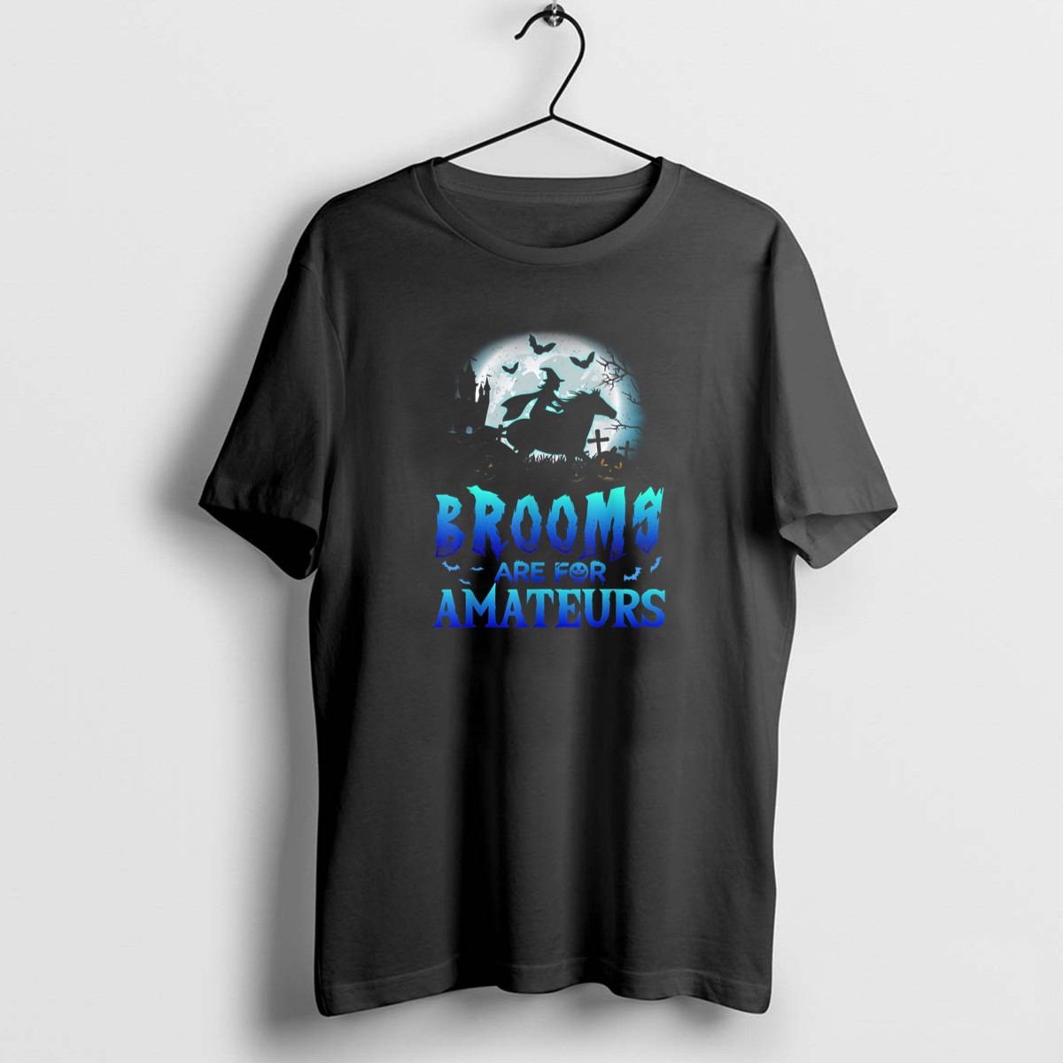 Be the first to review “Brooms Are For Amateurs Witch Horseback Riding Halloween Moon Graveyard T-Shirt”