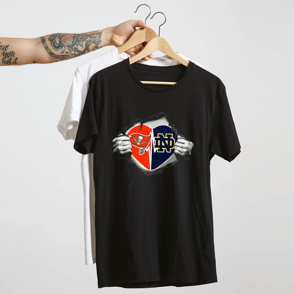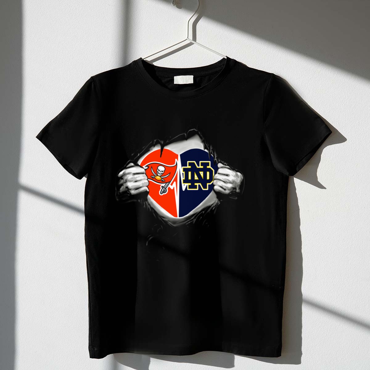 Show your team spirit with the Buccaneers Notre Dame Fighting Irish Heart Shield T-Shirt! Perfect for passionate fans who want to showcase their love for Notre Dame in style, this shirt is ideal for casual outings, themed events, or everyday wear. Made with a unique fan-made design printed right here in the USA, it combines comfort and team pride, making it a must-have for any dedicated supporter.