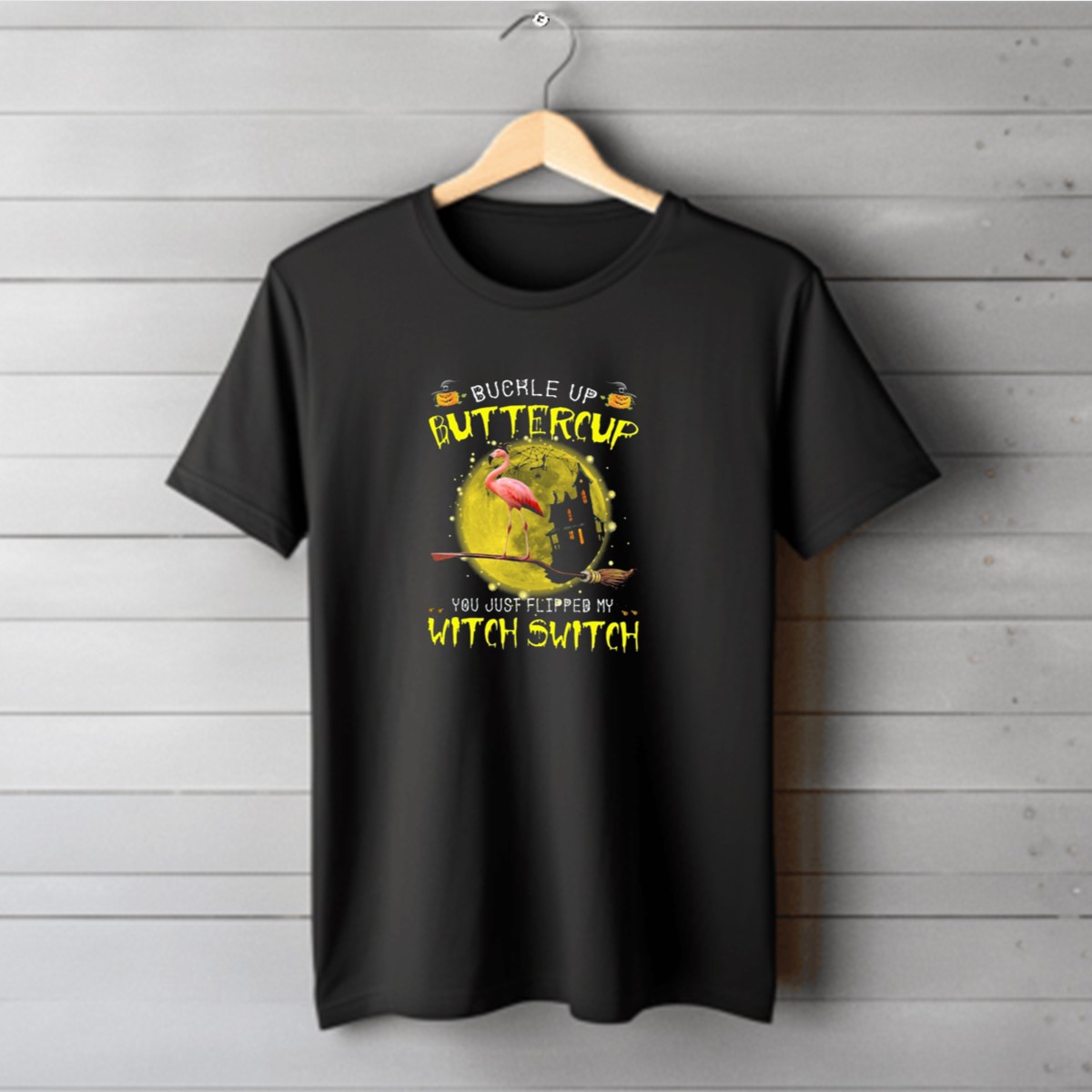 Be the first to review “Buckle Up Buttercup You Just Flipped My Witch Switch Halloween Flamingo T-Shirt”