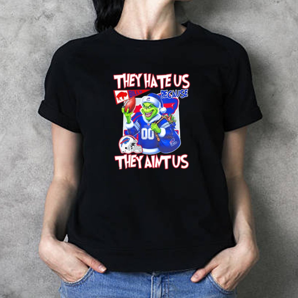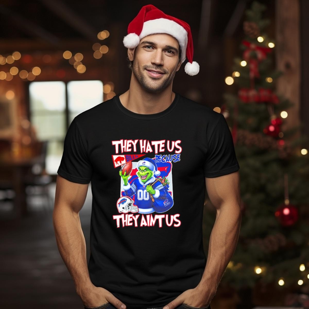 Show off your team spirit this holiday season with our Buffalo Bills NFL Santa Grinch Christmas “They Hate Us Because They Ain’t Us” T-shirt! Perfect for die-hard Bills fans, this shirt combines festive cheer with bold team pride. Whether you’re at a holiday party, a casual get-together, or cheering from the stands, this unique fan-made design will make you the center of attention. Crafted for comfort and style, it’s an essential addition to any Bills supporter’s wardrobe.