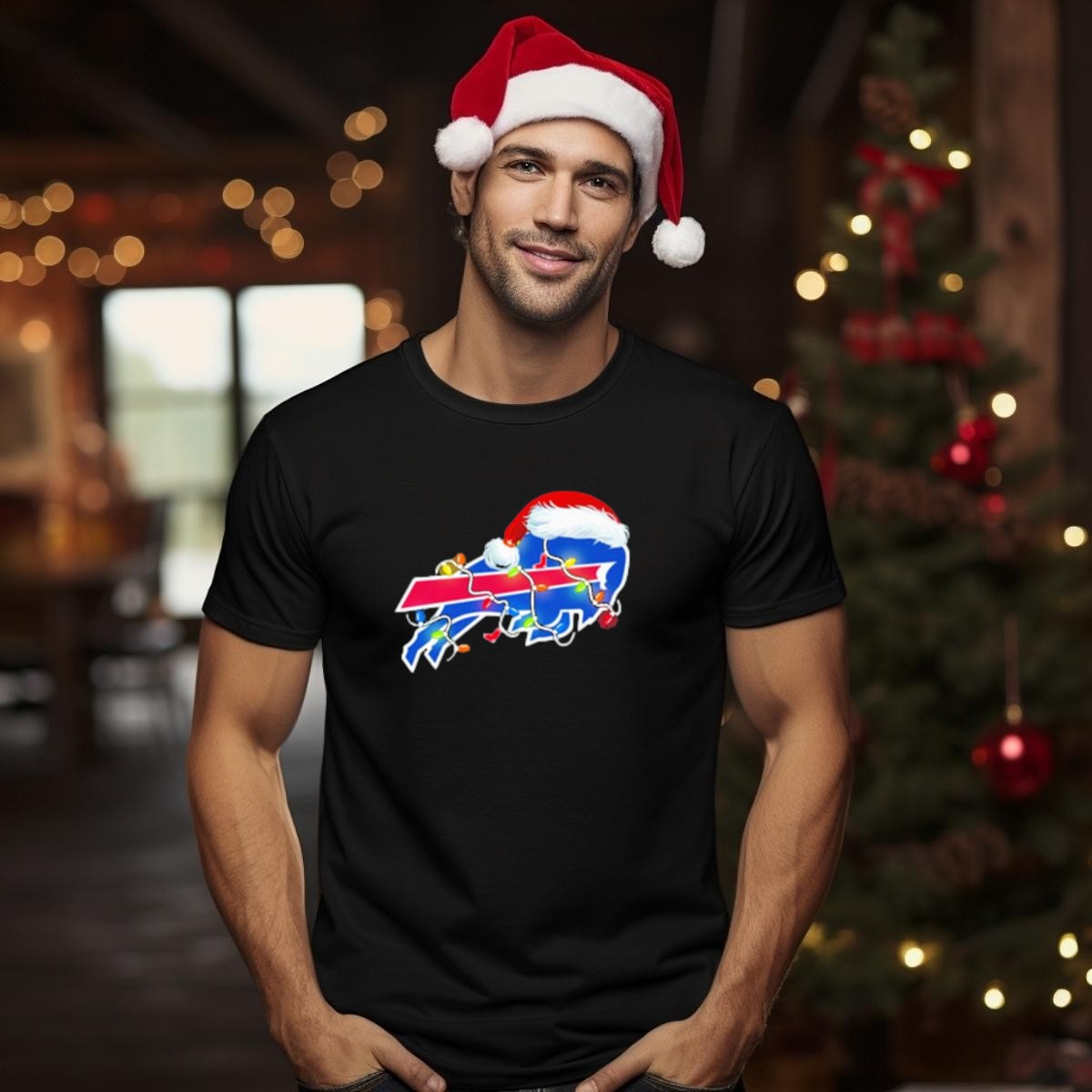Get into the holiday spirit with our Buffalo Bills Santa Hat Christmas Lights T-Shirt! Perfect for die-hard fans and holiday enthusiasts alike, this festive tee is designed for casual wear, themed events, and everyday comfort. The vibrant fan-made design, printed right here in the USA, combines team pride with a cheerful holiday touch, making it a unique addition to your seasonal wardrobe.