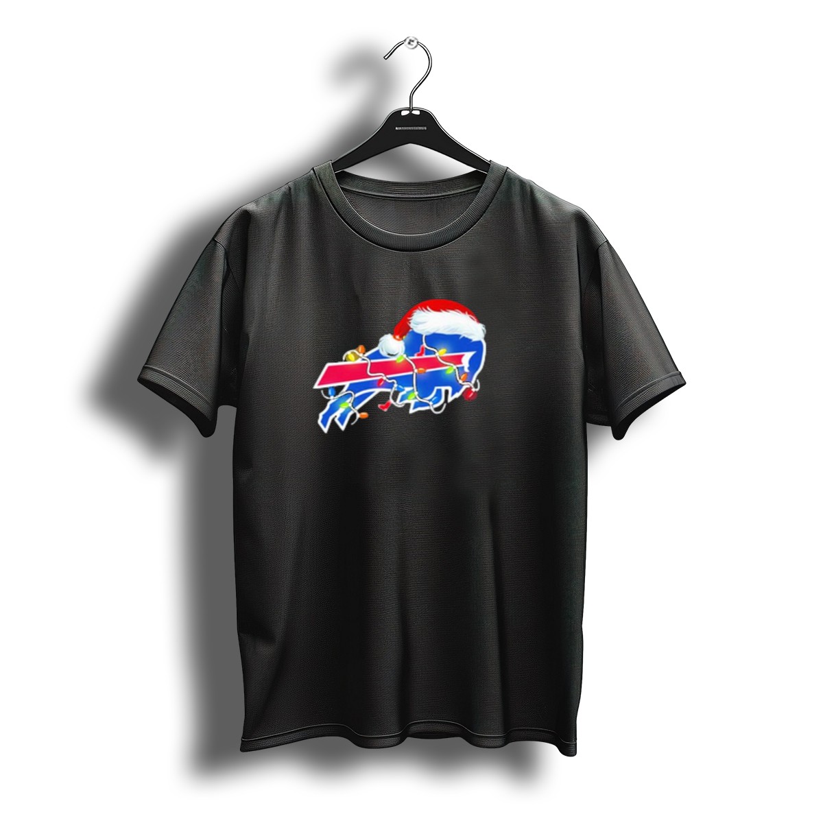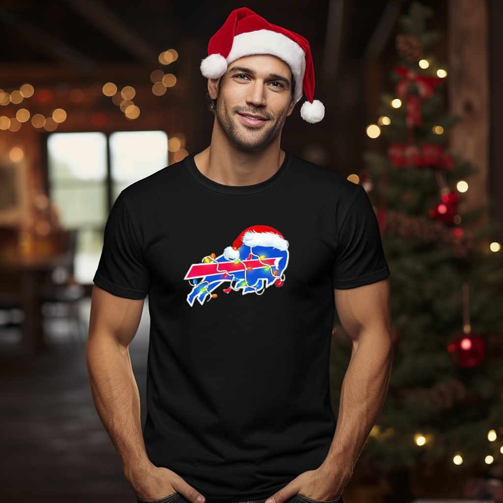 Celebrate the holiday season with our Buffalo Bills Santa Hat Christmas Lights T-Shirt! Perfect for passionate fans who want to showcase their team spirit while embracing the festive cheer, this shirt features a fun and vibrant design that is ideal for casual gatherings, themed events, or everyday wear. Made for comfort and style, this fan-made tee is printed right here in the USA, making it a unique addition to your winter wardrobe.