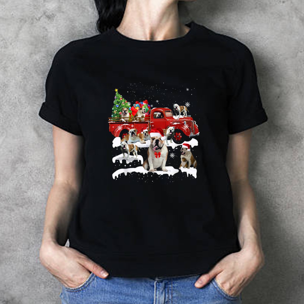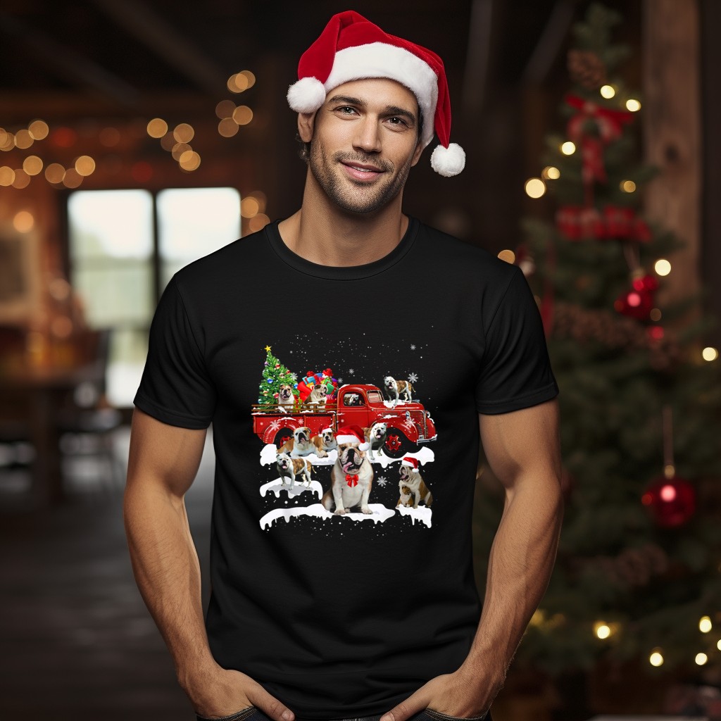 Get into the festive spirit with our Bulldog Santa Riding Red Truck With Christmas Tree And Snowflakes T-Shirt! This charming design features an adorable bulldog dressed as Santa, cruising in a classic red truck adorned with a Christmas tree and snowflakes. Perfect for dog lovers and holiday enthusiasts alike, this tee is ideal for casual gatherings, themed events, or simply spreading cheer during the holiday season. Made with comfort and style in mind, this fan-made design is proudly printed in the USA!