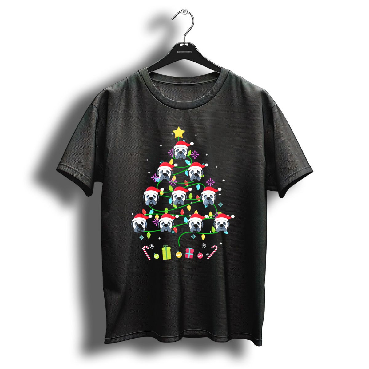 Be the first to review “Bullmastiff Santa Christmas Tree Lights Candy Canes Presents T Shirt”