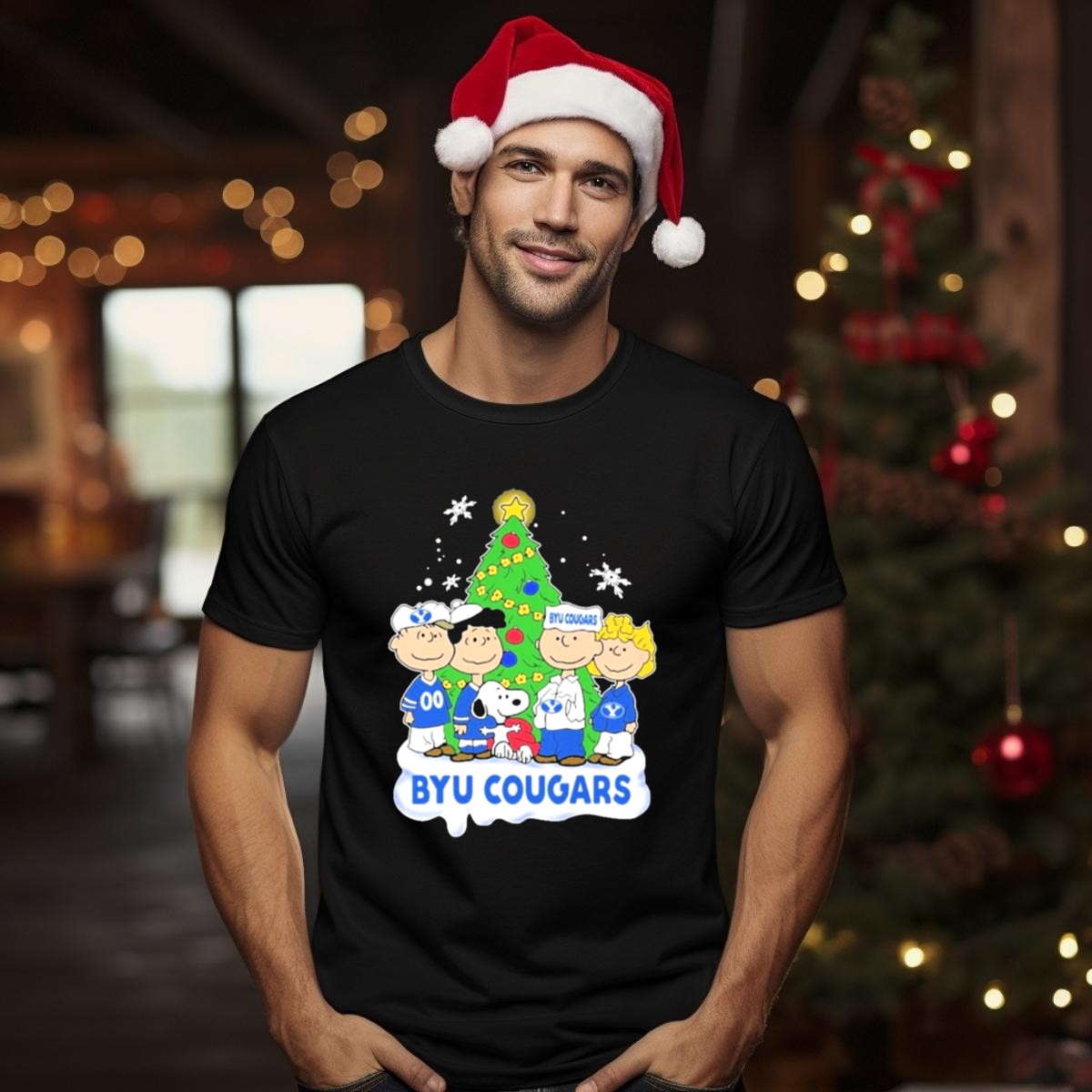 Byu Cougars Snoopy Christmas Tree Peanuts Characters T Shirt