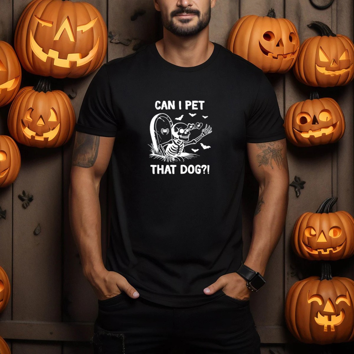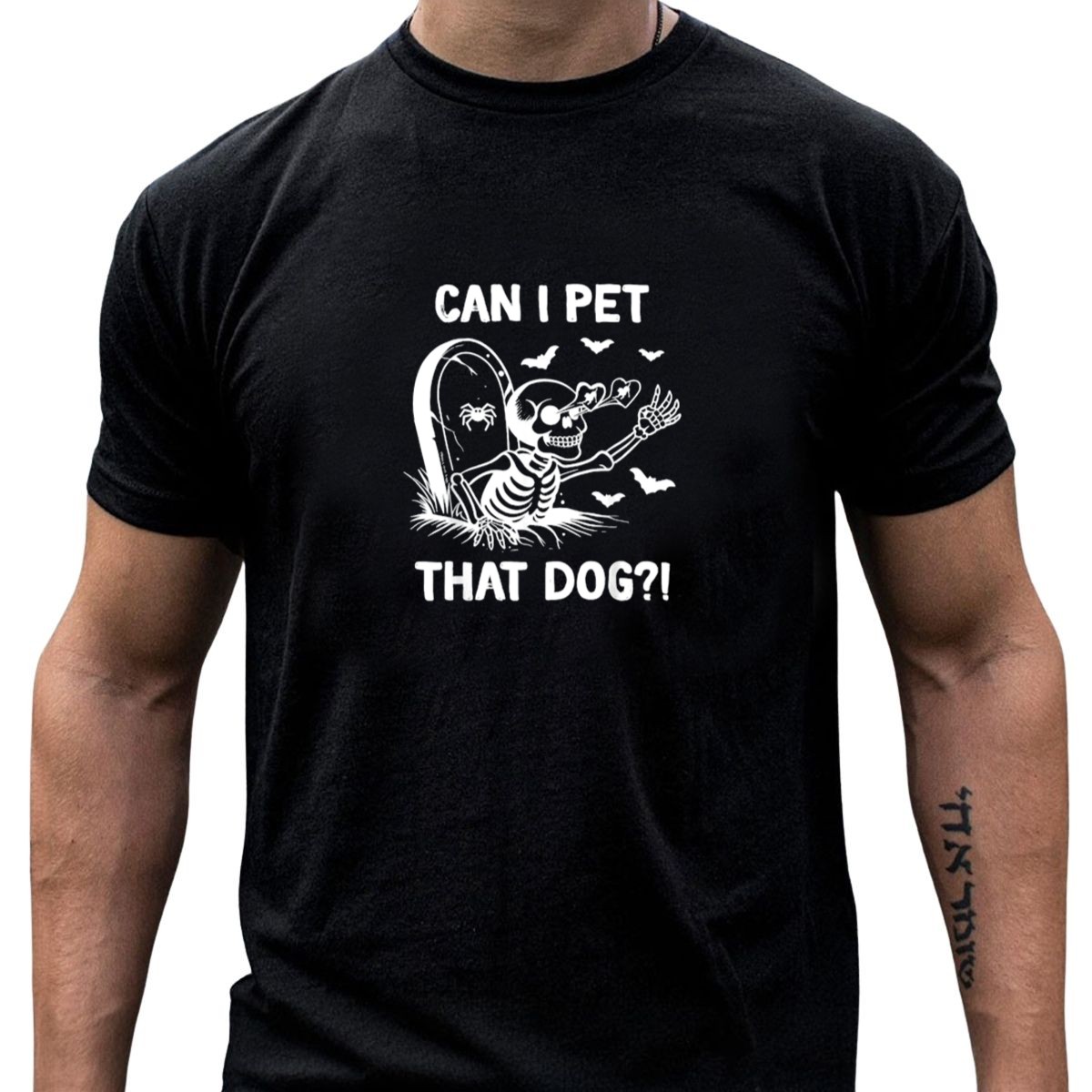 Can I Pet That Dog Halloween Skeleton And Bats T-Shirt