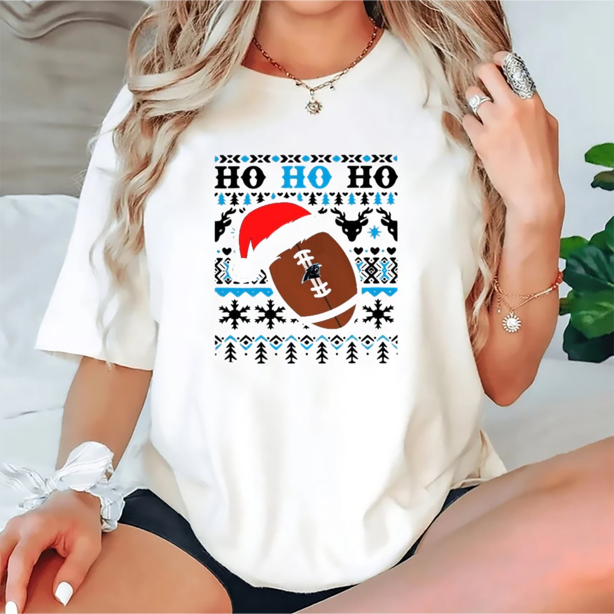 Get ready to spread some holiday cheer with our Carolina Panthers Ho Ho Ho Football Santa Christmas 2024 T-Shirt! Perfect for passionate Panthers fans, this festive tee combines your love for football with the joyful spirit of the season. Ideal for casual wear, themed events, or daily outings during the holidays, this shirt is a great way to showcase your team pride while celebrating Christmas in style. Made in the USA, this fan-made design ensures you stand out at parties or game day gatherings.