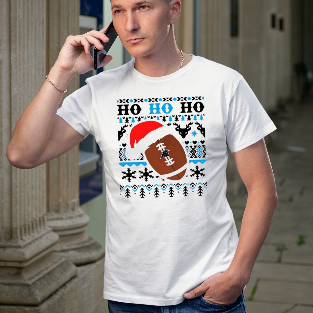 Carolina Panthers Ho Ho Ho Football Santa Christmas 2024 Nfl T-Shirt