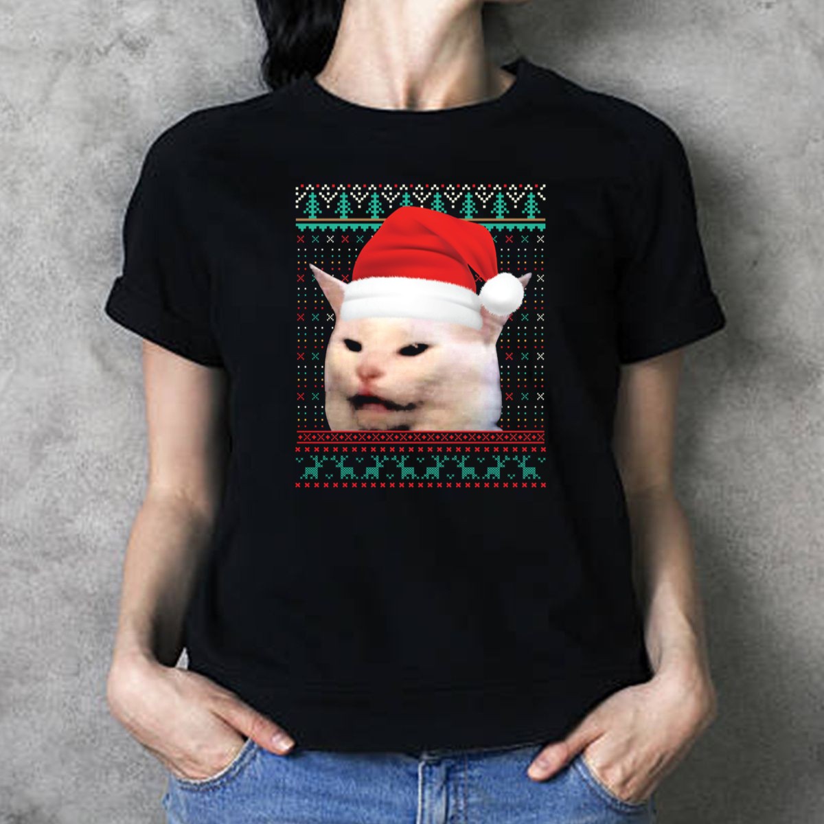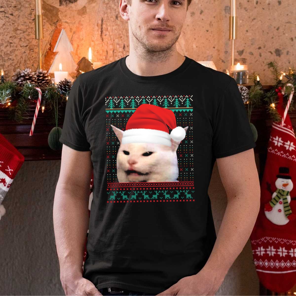 Get into the holiday spirit with our Cat Ugly Santa Hat Christmas Sweater Meme T-Shirt! Perfect for cat lovers and those who enjoy a good laugh, this shirt features a hilarious design that’s sure to turn heads at any festive gathering. Whether you’re attending a themed party, lounging at home, or simply spreading cheer in your daily wear, this shirt combines comfort and humor in one delightful package. Made with care and printed in the USA, it’s a unique addition to your all-season wardrobe.