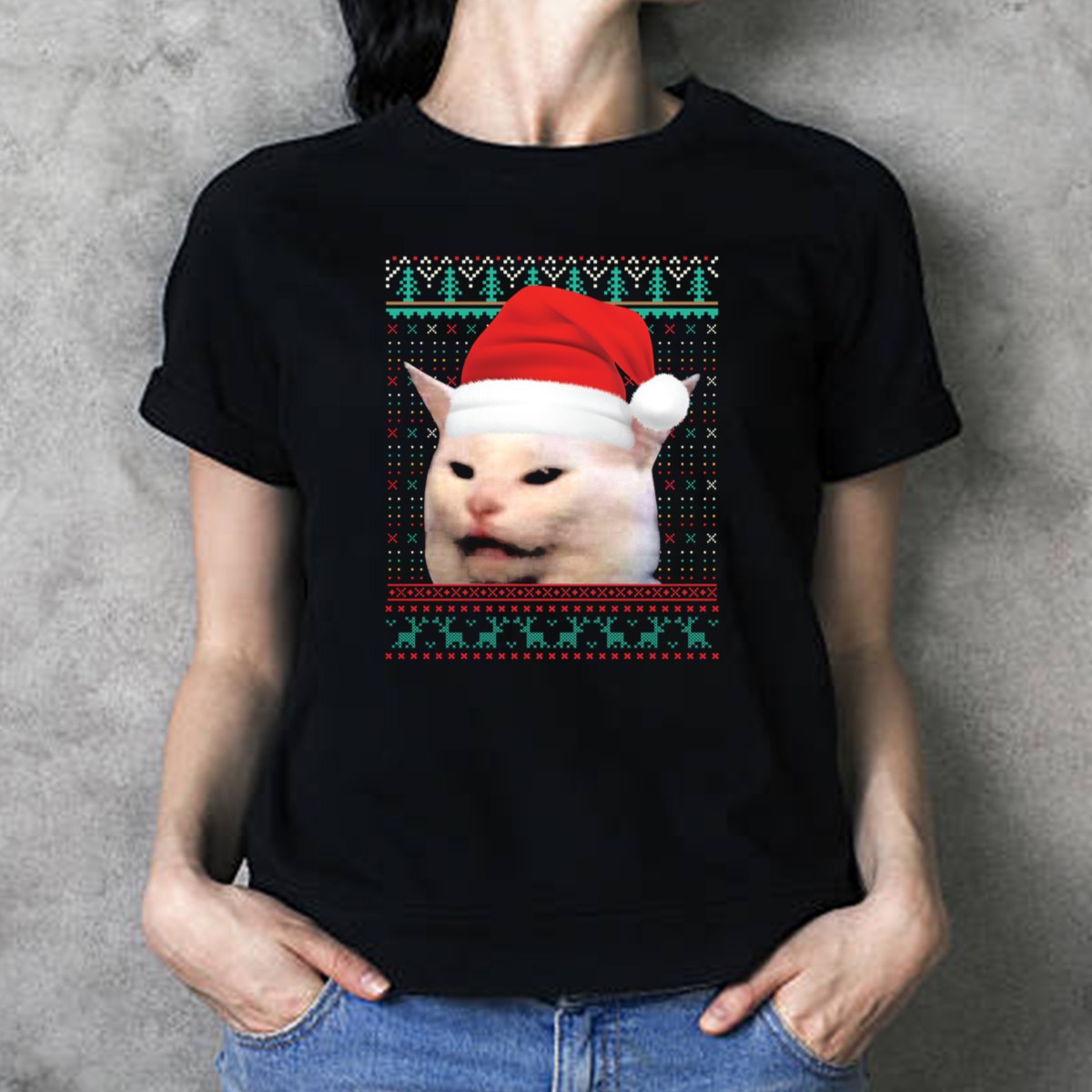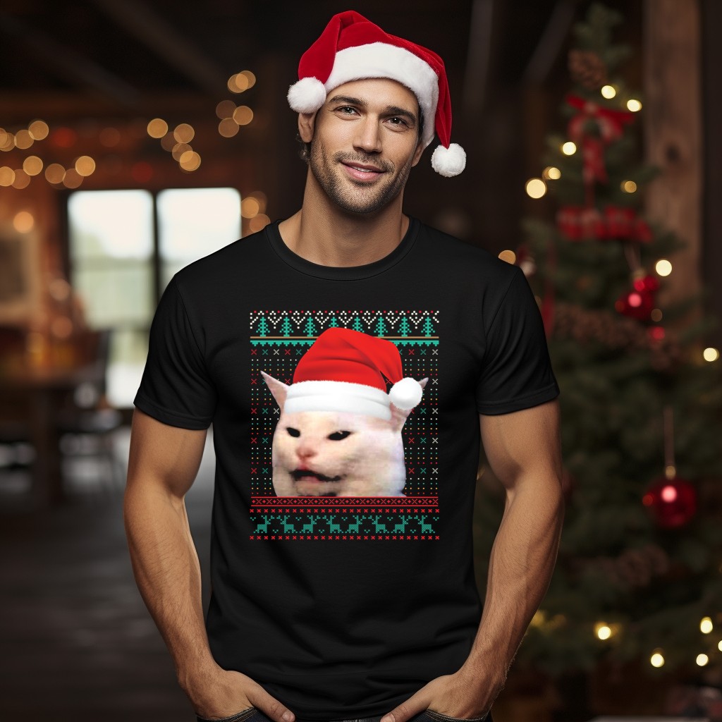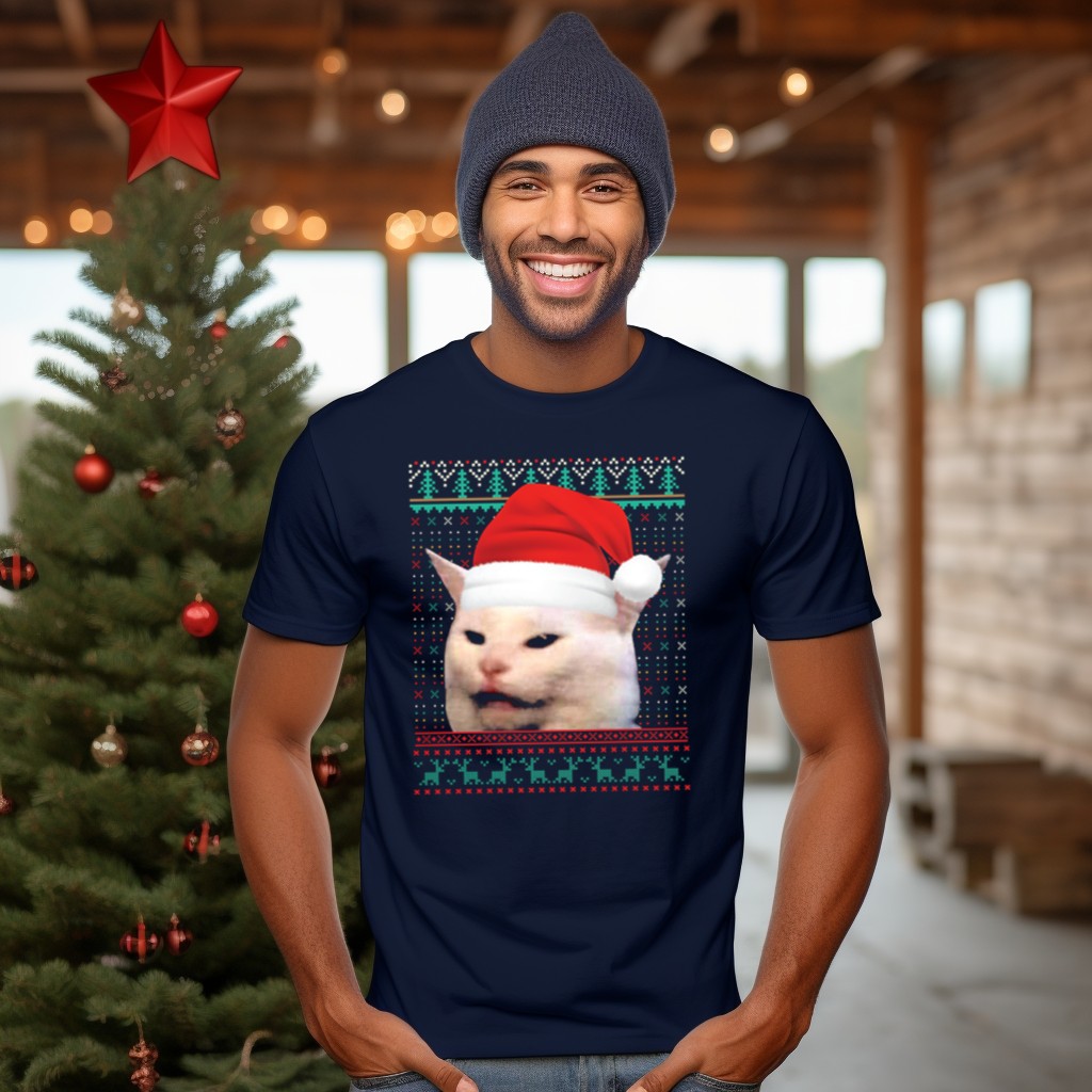 Get into the holiday spirit with our Cat Ugly Santa Hat Christmas Sweater Meme T-Shirt! This fun and quirky tee is perfect for cat lovers and meme enthusiasts alike, making it an ideal choice for casual wear, themed events, or daily outings during the festive season. With its unique fan-made design printed in the USA, this shirt will surely spark joy and laughter wherever you go!