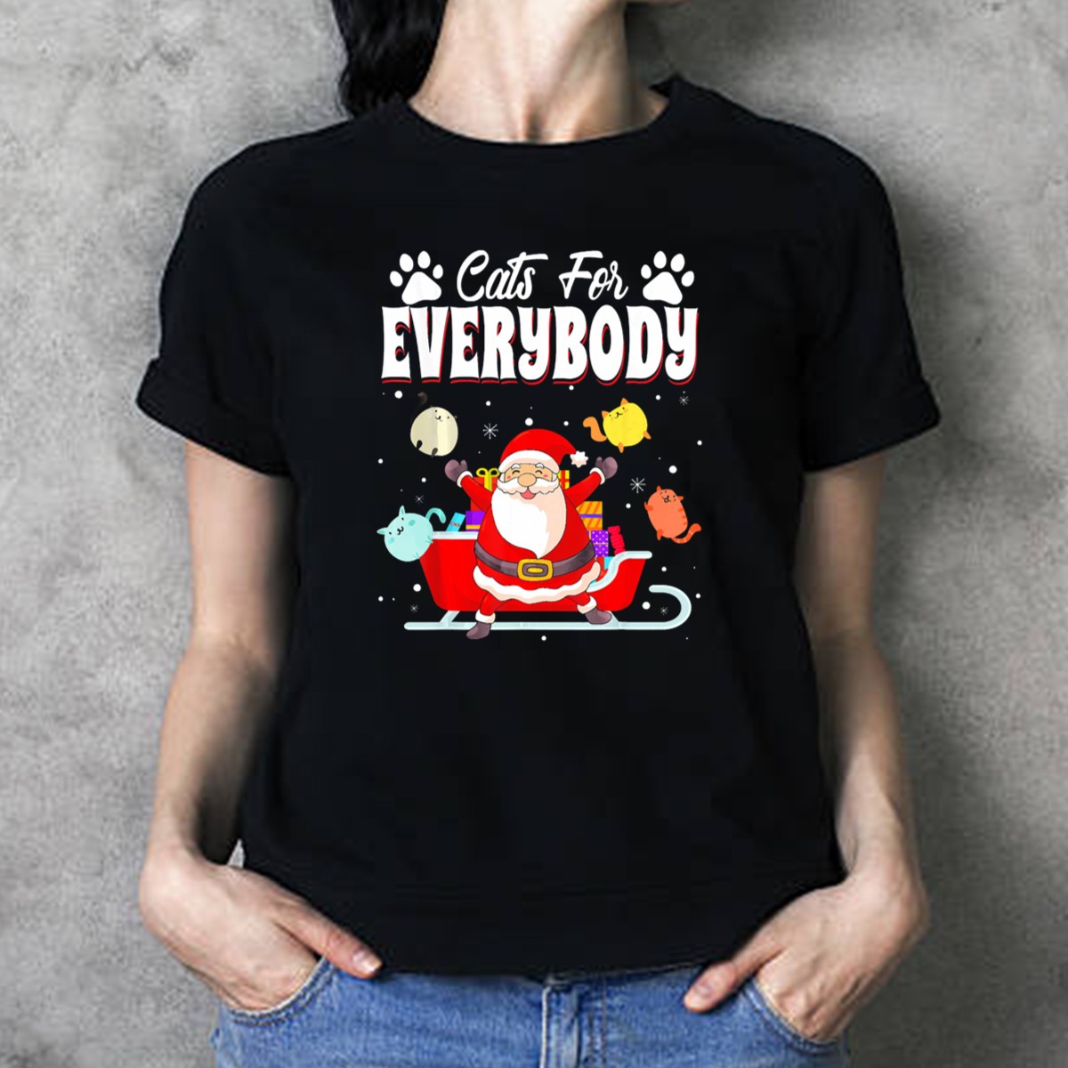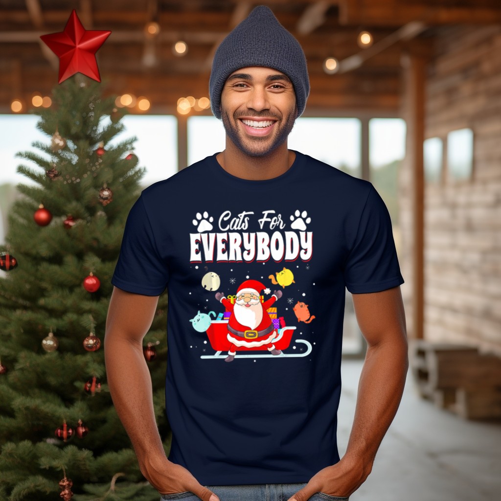 Celebrate the festive spirit with our Cats For Everybody Christmas T-Shirt! Perfect for cat lovers and holiday enthusiasts alike, this fun and whimsical design features adorable kittens riding in a Santa sleigh, making it an ideal choice for casual wear during the holiday season. Whether you’re attending a themed event, spreading cheer at family gatherings, or simply enjoying a cozy day at home, this fan-made design printed in the USA is sure to bring a smile to everyone around you!