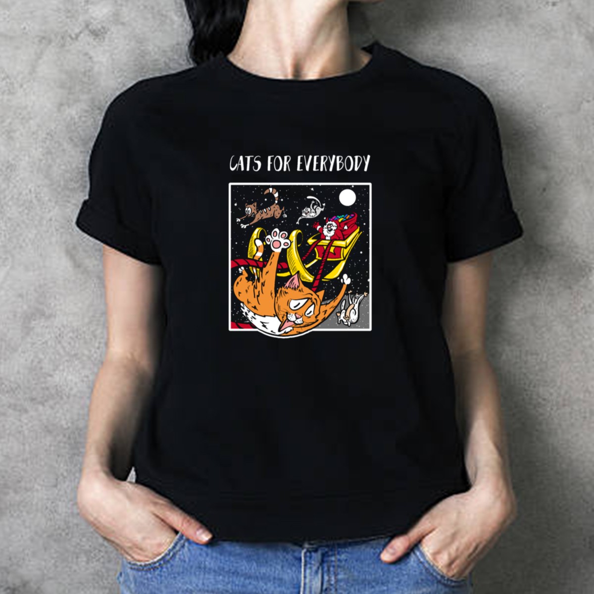 Cats For Everybody Funny Ugly Christmas Cute Cat Santa’S Sleigh T-Shirt