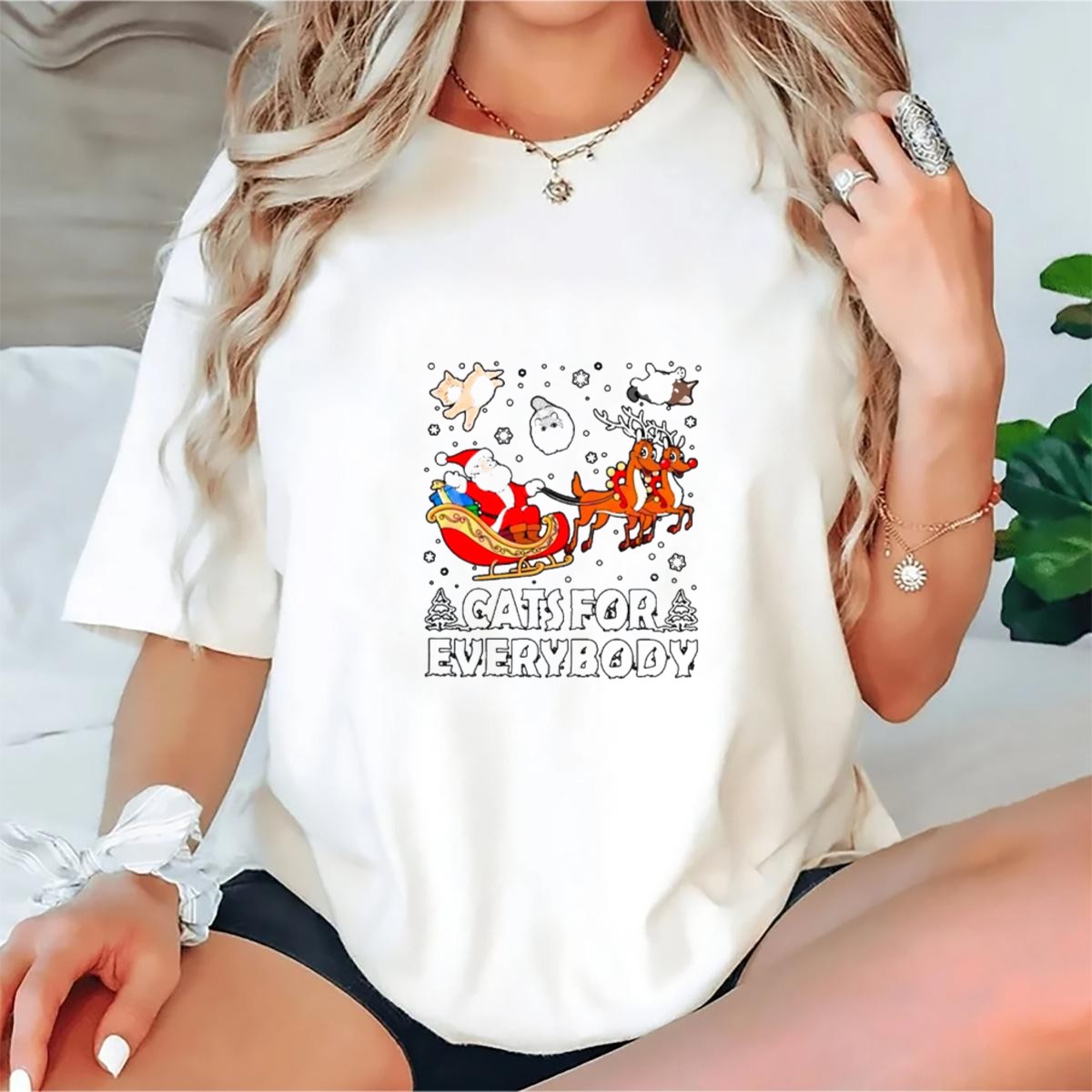 Cats For Everybody Santa Sleigh Christmas Reindeer T Shirt