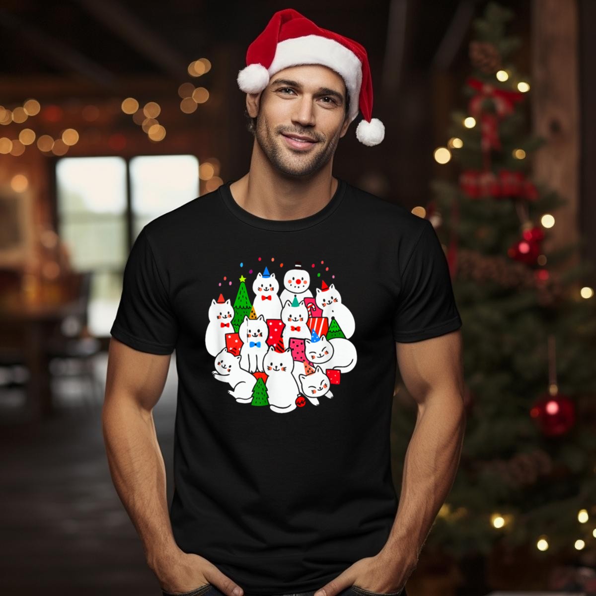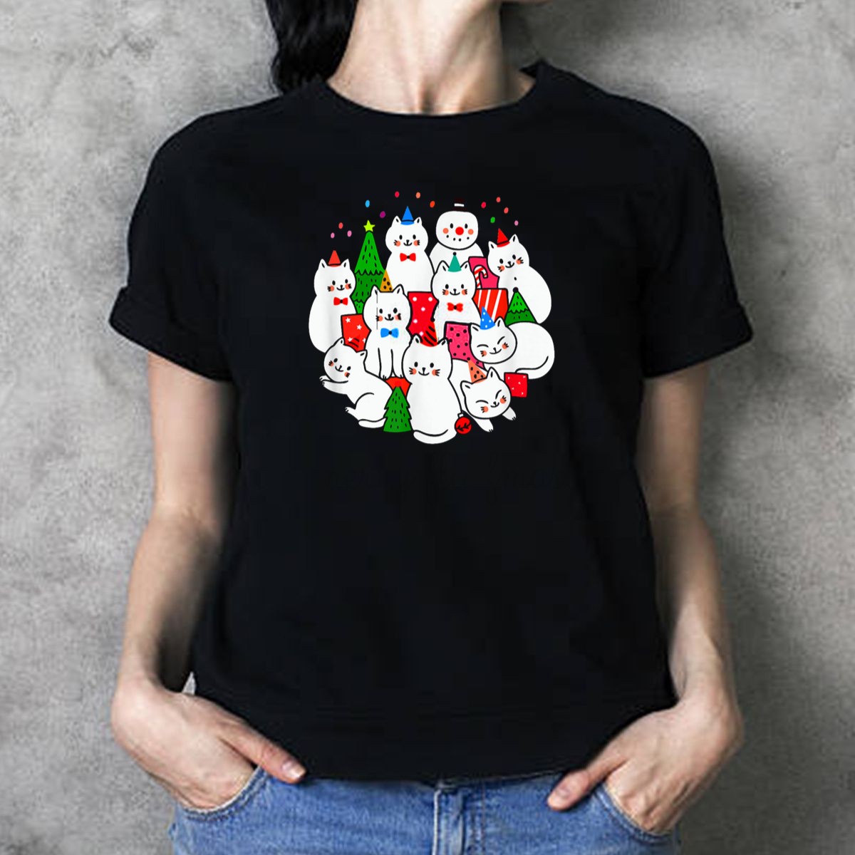 Cats Merry Fluffmas Snowman Christmas Trees Party Hats T-Shirt