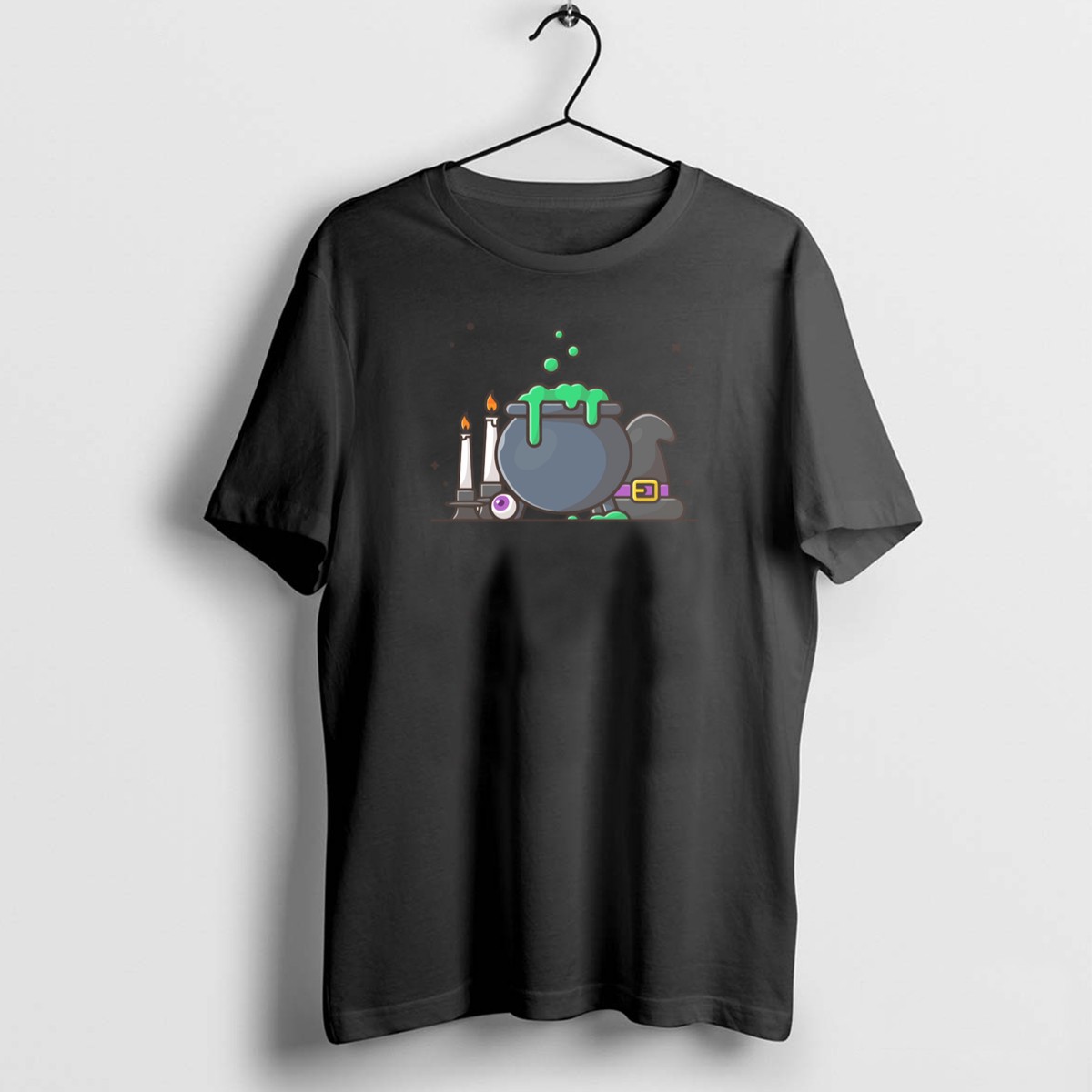 Embrace the spirit of Halloween with our Cauldron Witch Hat Bubbling Green Brew Candles Eyeball T-Shirt! Perfect for witches, wizards, and all lovers of the spooky season, this shirt brings a playful touch to your casual wardrobe. Ideal for themed events, trick-or-treating, or simply celebrating your love for all things eerie, the eye-catching design is sure to turn heads and spark conversations. Made in the USA, this fan-made creation combines comfort with a unique flair that sets it apart!