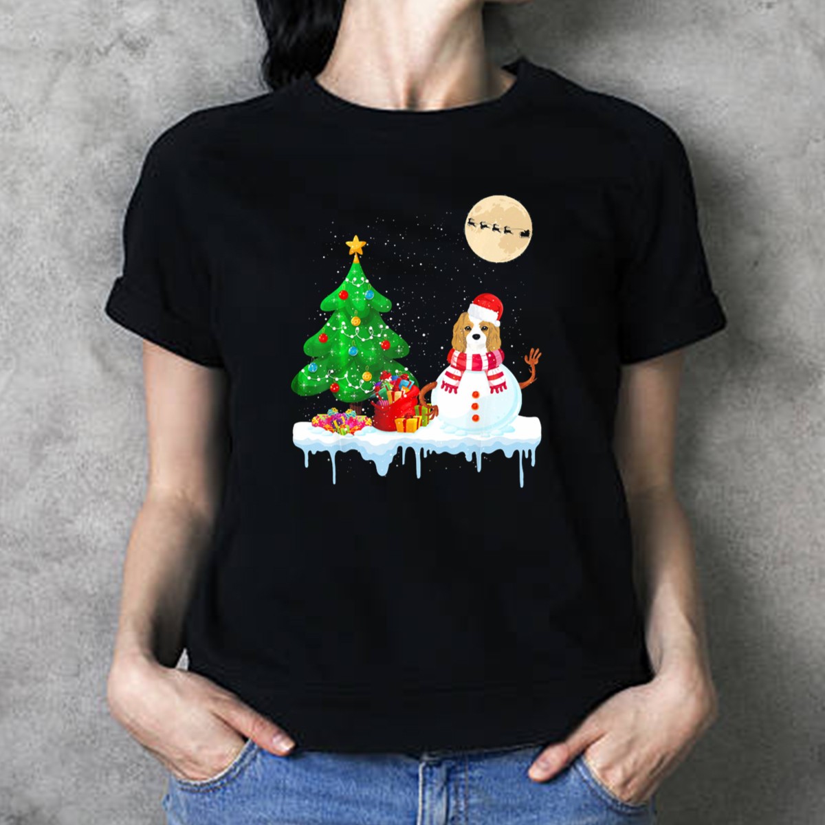 Celebrate the festive season in style with our Cavalier King Charles Spaniel Snowman Christmas Tree Santa Sleigh Moon T-Shirt! Perfect for dog lovers and holiday enthusiasts alike, this delightful tee features a whimsical design that captures the joy of Christmas. Whether you’re attending a family gathering, holiday parties, or simply enjoying a cozy day at home, this shirt is a must-have for spreading holiday cheer and showcasing your love for this charming breed. Made with care in the USA, it offers a unique touch to your casual wear collection.