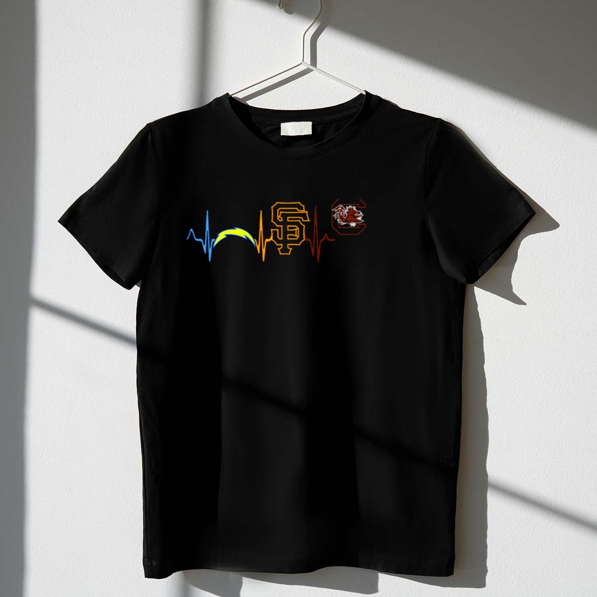 Show your unwavering support for the South Carolina Gamecocks with our Chargers Giants Heartbeat T-Shirt! This fan-made design perfectly captures the spirit of true Gamecock fans, making it an essential addition to your wardrobe. Whether you’re cheering from the stands, attending a themed event, or simply enjoying daily wear, this classic fit tee ensures you stay comfortable and stylish all season long. Proudly printed in the USA, it’s a must-have for any passionate supporter!