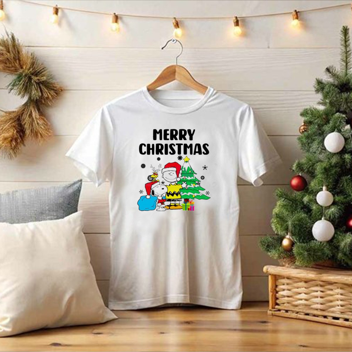 Charlie Snoopy Woodstock Merry Christmas Tree Santa Hats T-Shirt