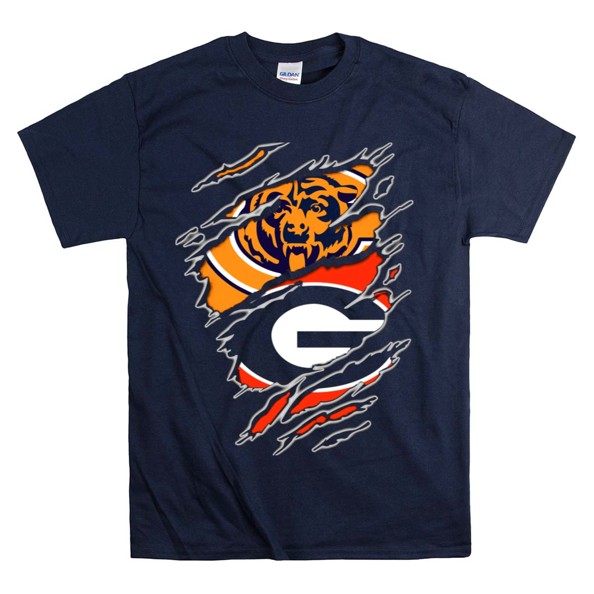 Show your team spirit with our Chicago Bears Georgia Bulldogs Logo Mashup T-Shirt! Perfect for fans who love to support their favorite teams, this unique design brings together the iconic logos of both the Chicago Bears and Georgia Bulldogs. Whether you’re heading to a game, a casual outing, or a themed event, this shirt is a stylish and comfortable choice that showcases your passion for football. Made with high-quality materials and printed in the USA, it’s a standout addition to any fan’s wardrobe.