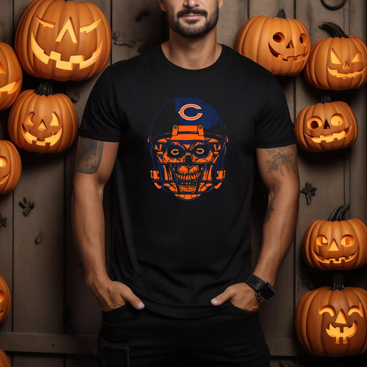 Show your team spirit this Halloween with our Chicago Bears Skull Helmet T-Shirt! Perfect for die-hard fans and casual wearers alike, this unique fan-made design features a striking skull helmet graphic that’s sure to turn heads at themed events, game days, or just around town. Made for comfort and style, this tee is a great way to celebrate your love for the Bears while embracing the festive Halloween spirit.