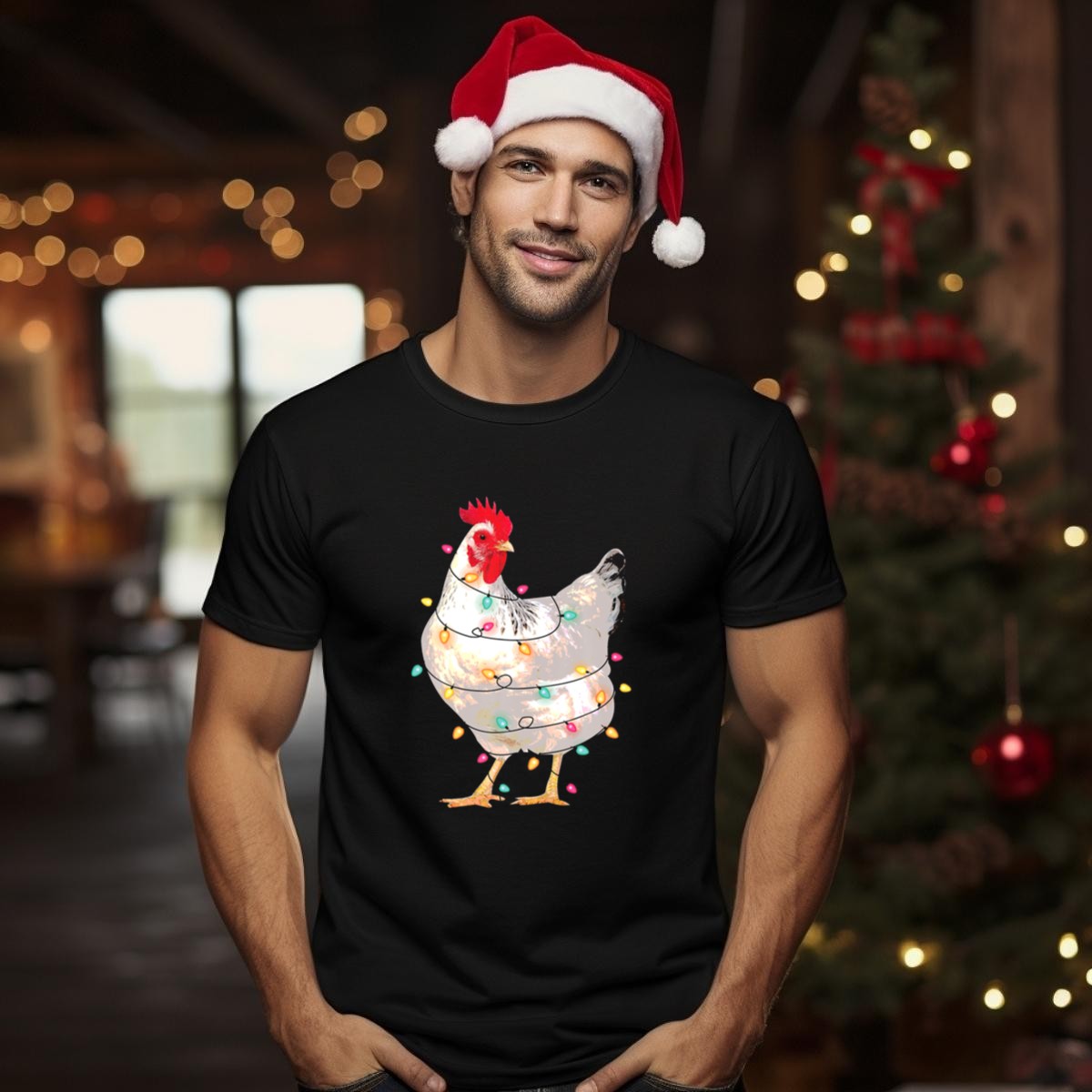 Get into the festive spirit with our Chicken Wrapped In Colorful Christmas Lights With Santa Hat T-Shirt! Perfect for poultry lovers and holiday enthusiasts alike, this fun and quirky design is sure to bring smiles at casual gatherings, themed events, or just your daily outings. Made in the USA, this fan-made tee is a unique way to showcase your love for the season while staying comfortable and stylish.