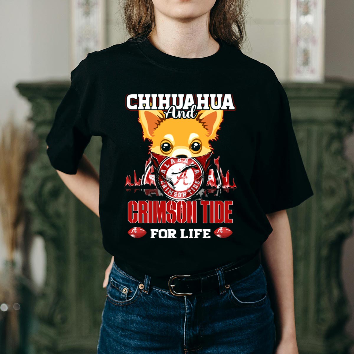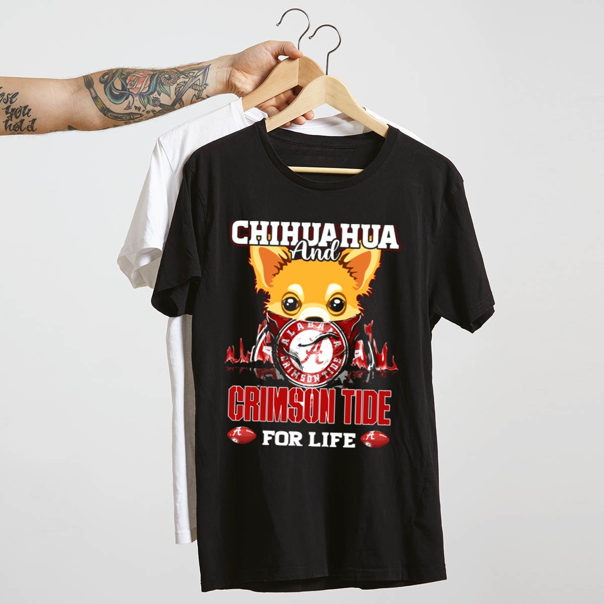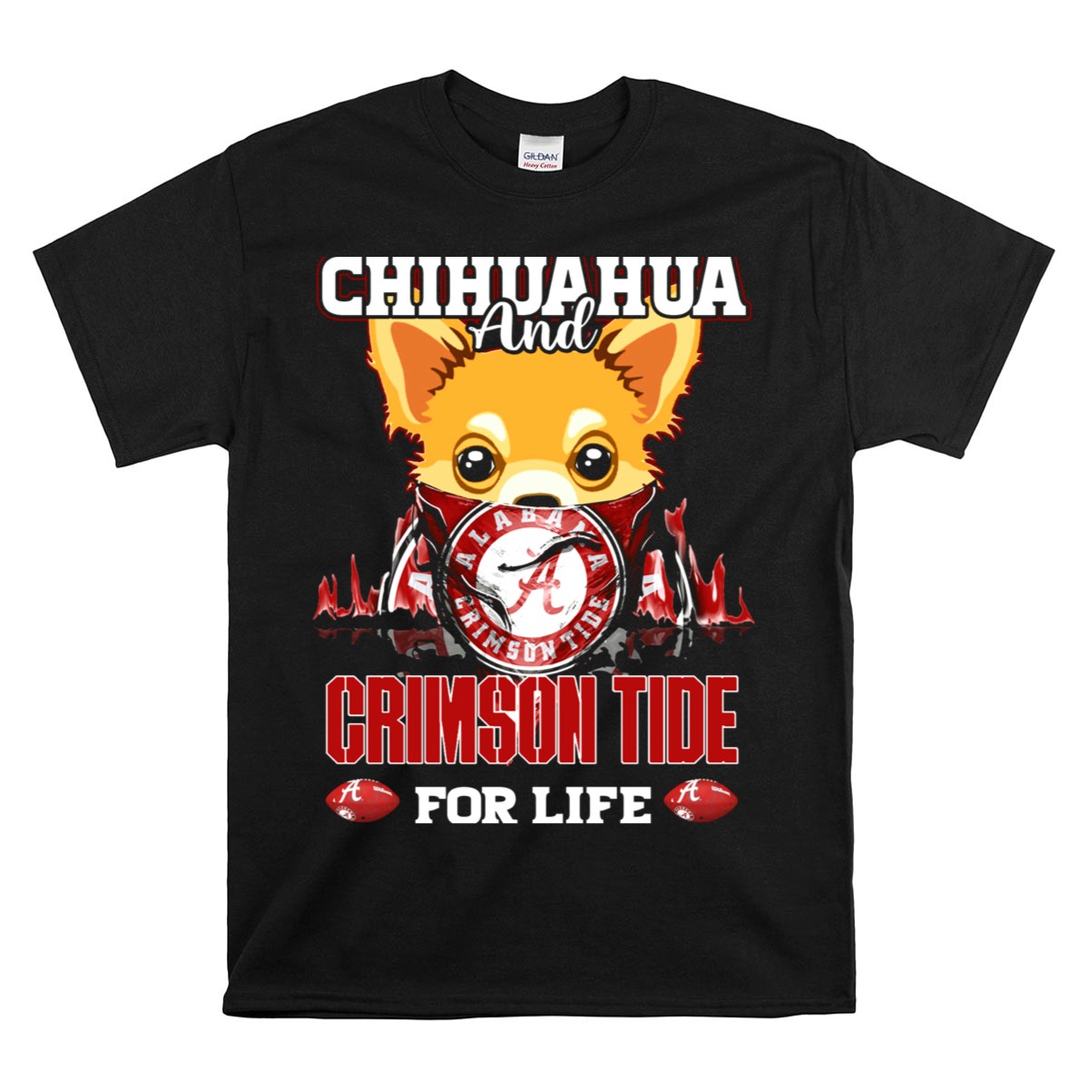Show off your love for the Alabama Crimson Tide and your favorite furry friend with this charming Chihuahua and Alabama Crimson Tide For Life T-Shirt! Perfect for die-hard fans and dog lovers alike, this shirt is ideal for casual outings, game days, or themed events. The unique fan-made design, proudly printed in the USA, combines comfort and style, making it a must-have addition to your wardrobe.