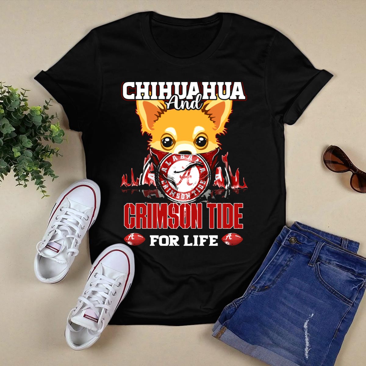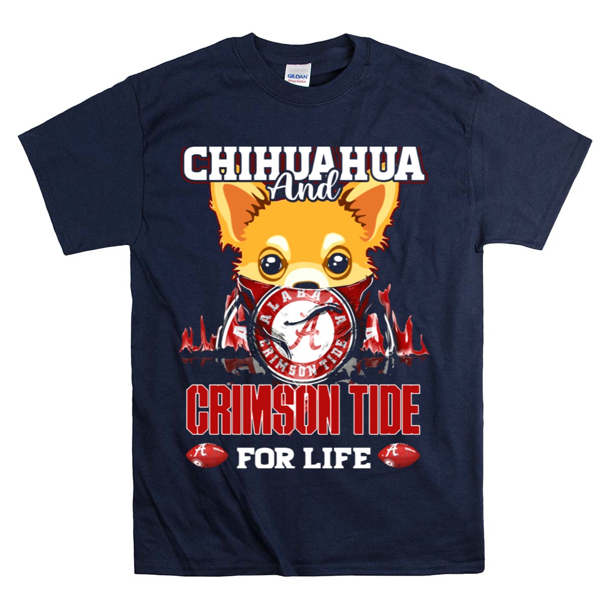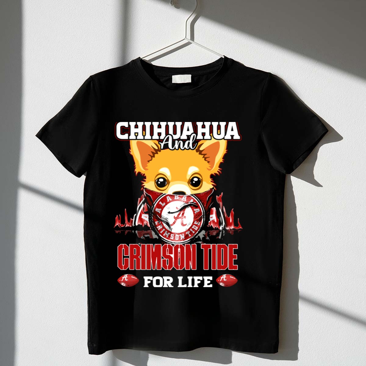 Show off your love for the Alabama Crimson Tide and your favorite furry friend with this charming Chihuahua and Alabama Crimson Tide For Life T-Shirt! Perfect for die-hard fans and dog lovers alike, this shirt is ideal for casual outings, game days, or themed events. The unique fan-made design, proudly printed in the USA, combines comfort and style, making it a must-have addition to your wardrobe.