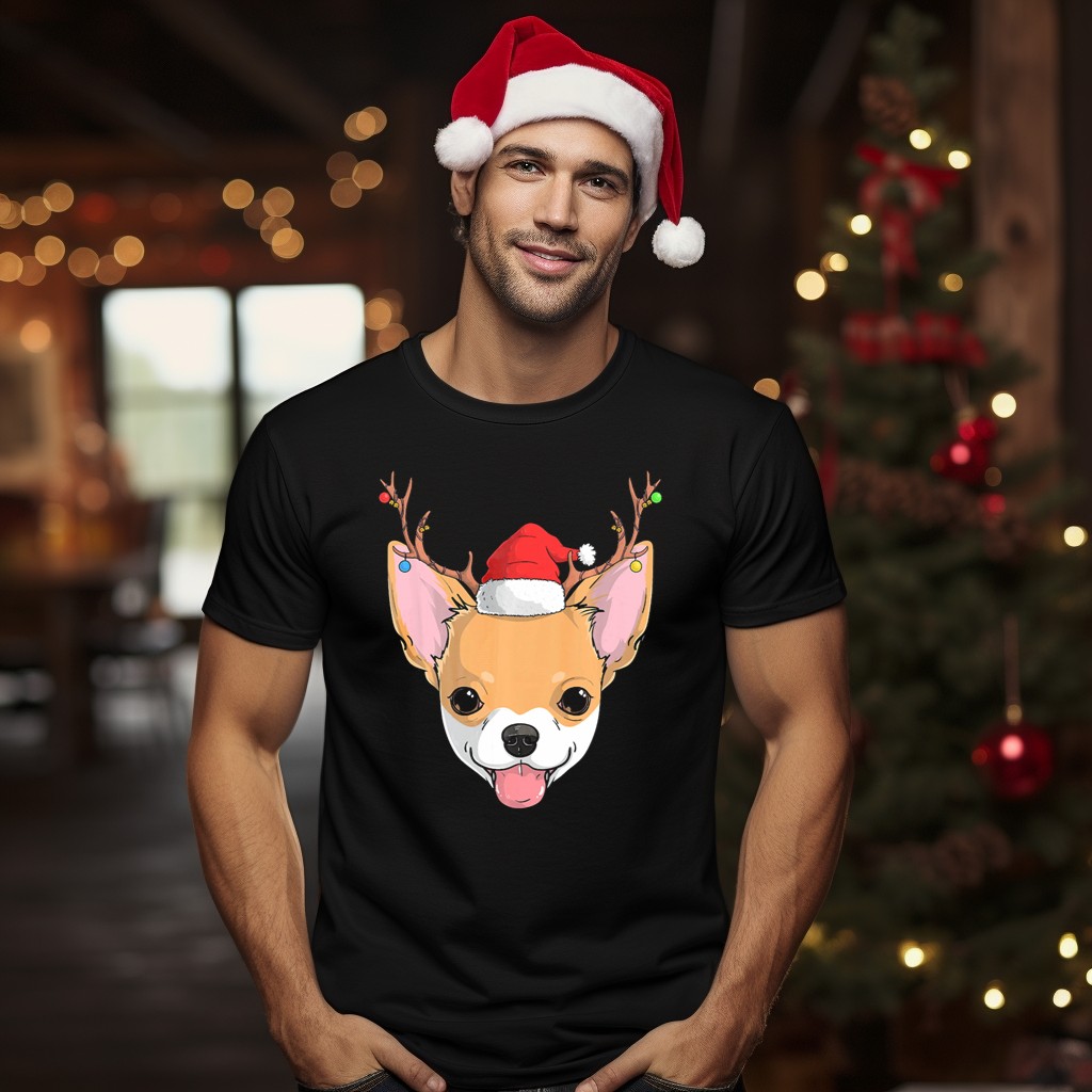 Celebrate the festive season with our adorable Chihuahua Dog Santa Claus Reindeer Antlers Christmas T-Shirt! Perfect for dog lovers and holiday enthusiasts alike, this fun graphic tee is designed to bring joy and laughter to casual gatherings, themed events, or your daily wear during the holiday season. With its unique fan-made design printed in the USA, this shirt is a delightful way to showcase your love for your furry friend and the spirit of Christmas.