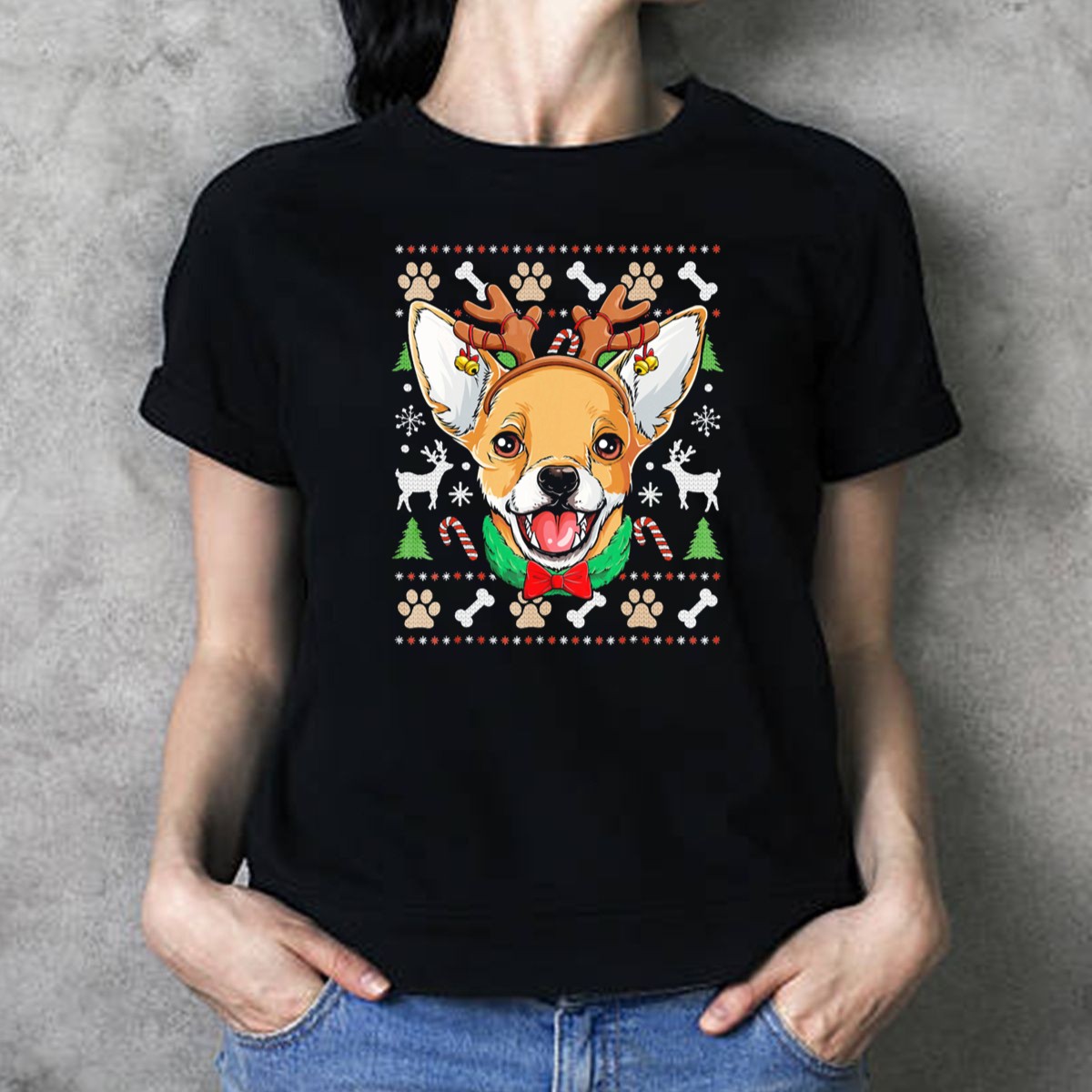Celebrate the festive season with our Chihuahua Reindeer Christmas Candy Canes Paw Prints Snowflakes Bones Trees T-Shirt! Perfect for dog lovers and holiday enthusiasts alike, this fun and whimsical design brings joy to any casual occasion, whether you’re attending a themed event, holiday gathering, or simply enjoying a day out. Made with care in the USA, this fan-made shirt showcases your love for Chihuahuas while keeping you comfortable and stylish all season long.