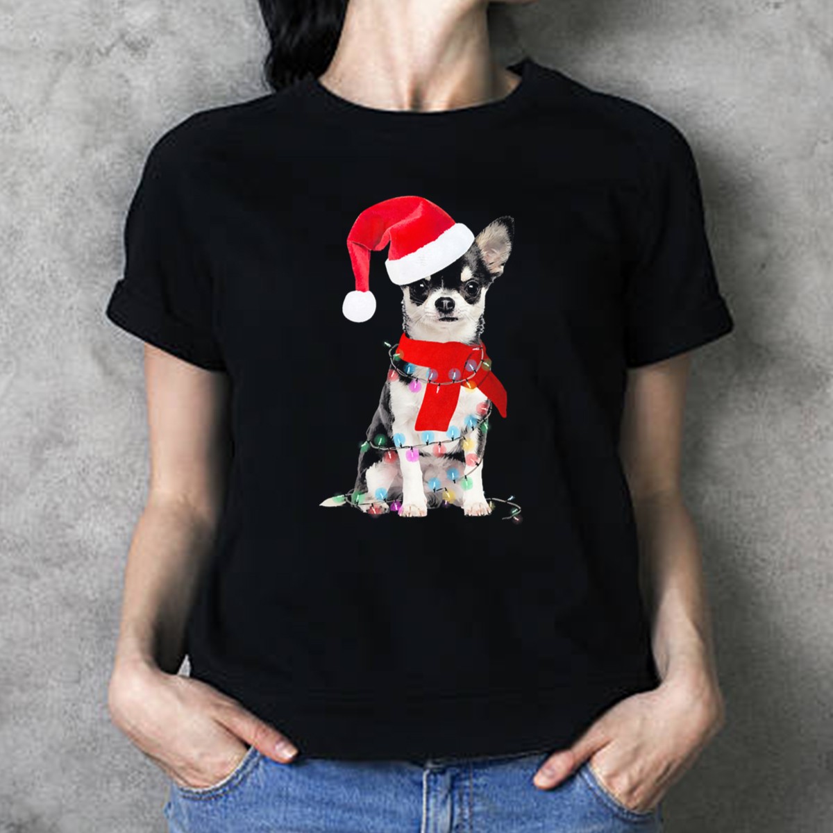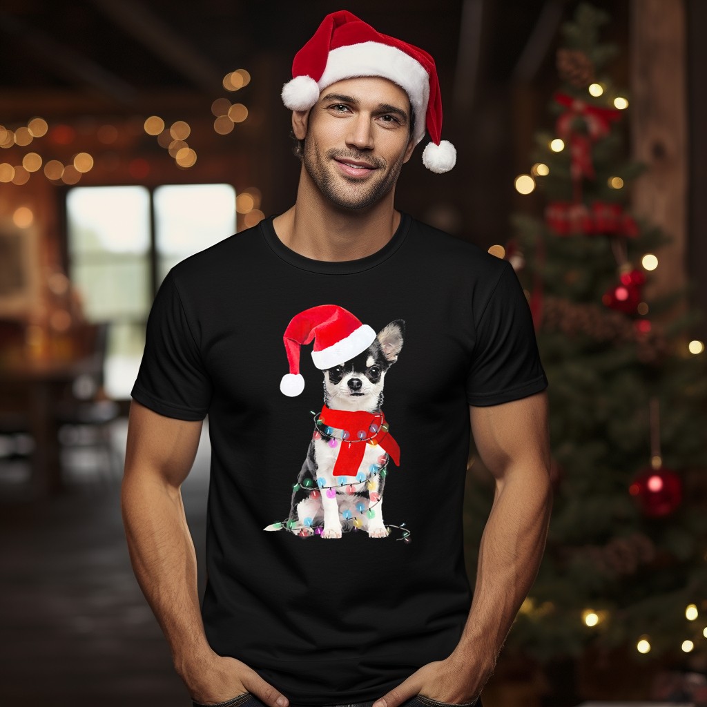 Celebrate the festive season with our adorable Chihuahua Santa Hat Scarf Christmas Lights T-Shirt! Perfect for dog lovers and holiday enthusiasts alike, this charming design is ideal for casual wear, themed events, or daily outings during the winter months. Made with a fan-made graphic printed in the USA, this shirt brings joy and warmth to your holiday wardrobe while showcasing your love for furry friends.