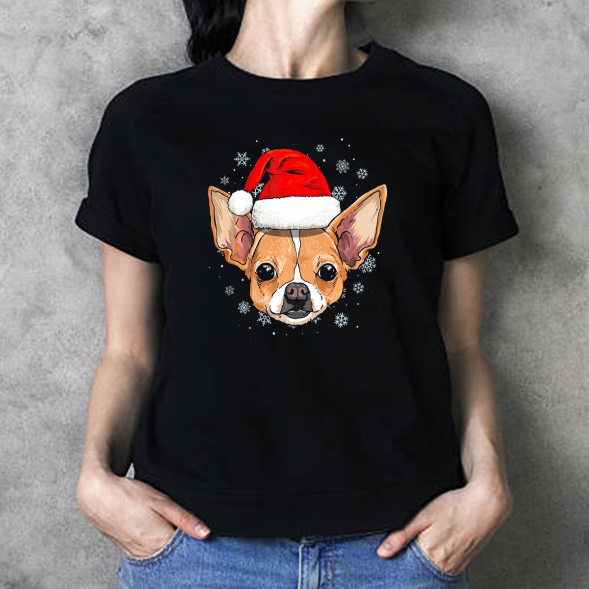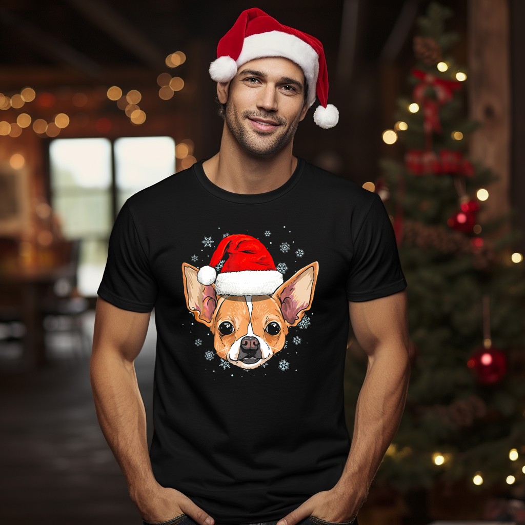 Celebrate the holiday season in style with our adorable Chihuahua Santa Hat Snowflakes Holiday Dog Christmas T-Shirt! Perfect for dog lovers and festive enthusiasts alike, this shirt features a charming design that showcases your love for Chihuahuas and the joy of Christmas. Ideal for casual wear, themed events, or simply spreading holiday cheer, this fan-made graphic tee is printed in the USA, ensuring a unique touch to your festive wardrobe.