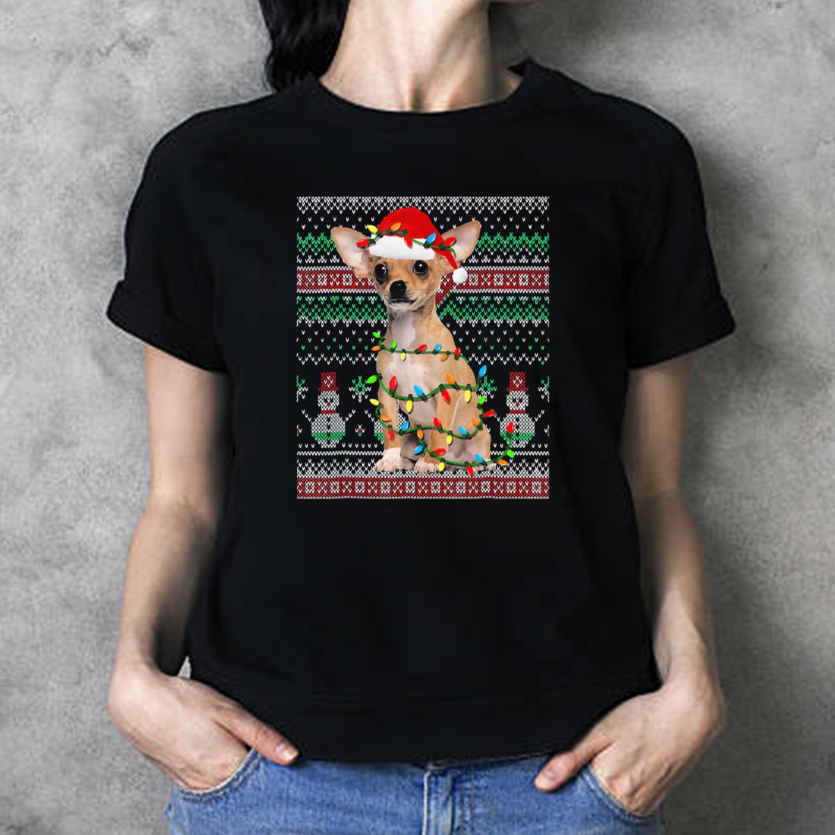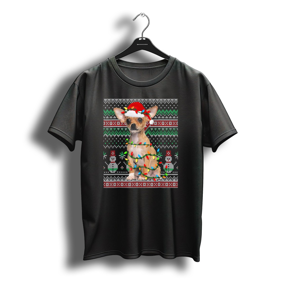 Get ready to spread some holiday cheer with our Chihuahua Ugly Christmas Santa Hat And Lights Sweater Snowman T-Shirt! This delightful graphic tee is perfect for dog lovers and holiday enthusiasts alike. With its fun and festive design, it’s ideal for casual wear, themed events, or just lounging around during the holiday season. Made for comfort and style, this shirt is sure to bring a smile to everyone around you!