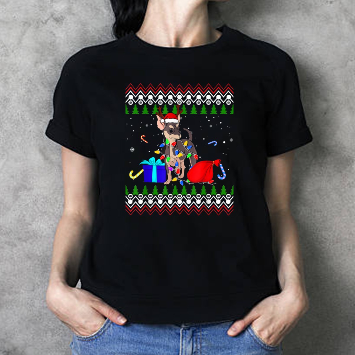 Celebrate the holiday season in style with our Chihuahua Ugly Christmas T-Shirt! Perfect for dog lovers and festive spirits alike, this fun and unique design features a playful Chihuahua adorned with a Santa hat, reindeer antlers, and sparkling Christmas lights. Ideal for casual wear, themed events, or just spreading cheer during daily errands, this shirt is a must-have for your holiday wardrobe!