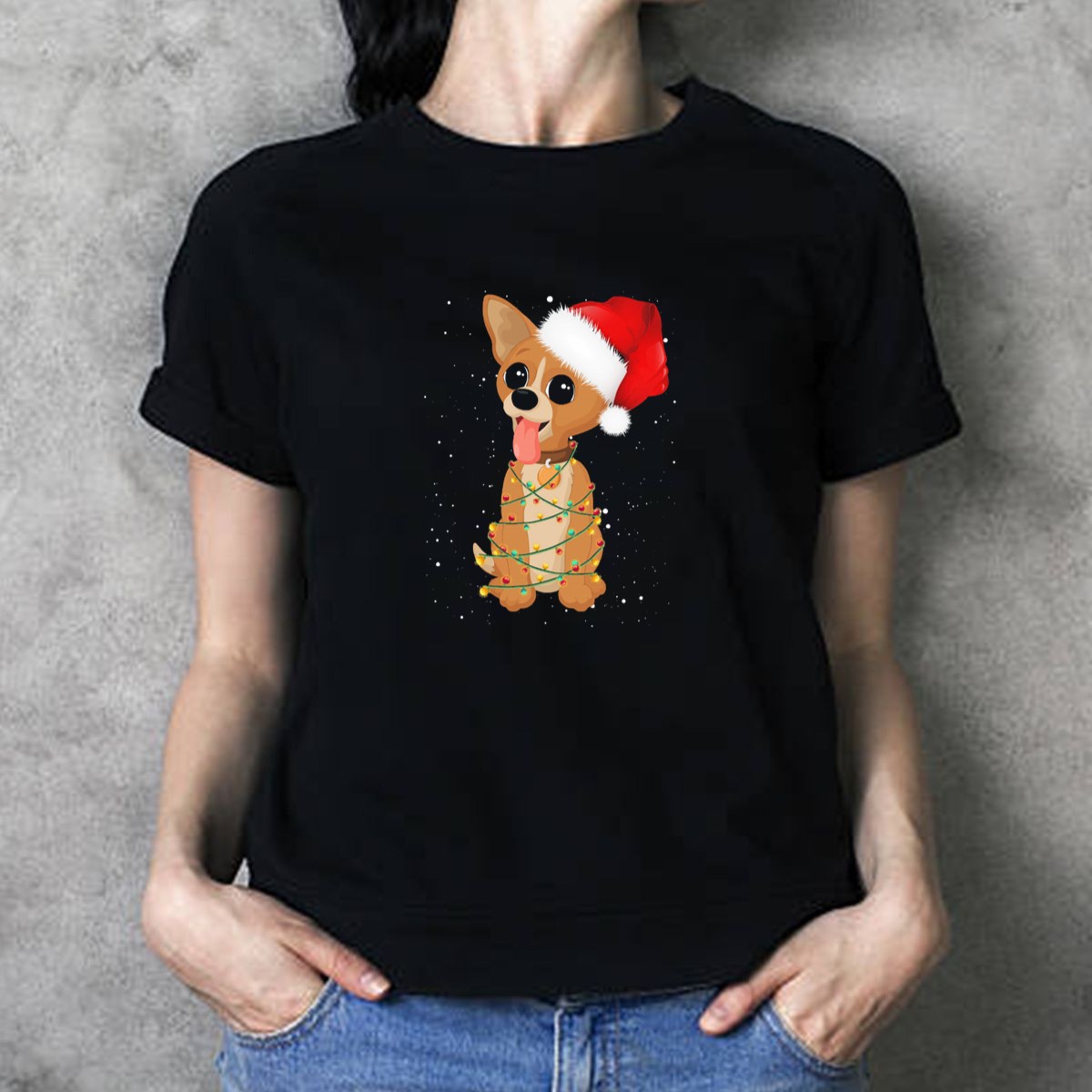 Celebrate the festive season with our adorable Chihuahua Wrapped In Christmas Lights With Santa Hat Holiday T-Shirt! Perfect for dog lovers and holiday enthusiasts alike, this cheerful tee captures the spirit of the season with its playful design. Whether you’re attending a holiday party, lounging at home, or spreading cheer at themed events, this shirt is sure to bring smiles and warmth. Made with care in the USA, it’s an essential addition to your winter wardrobe.