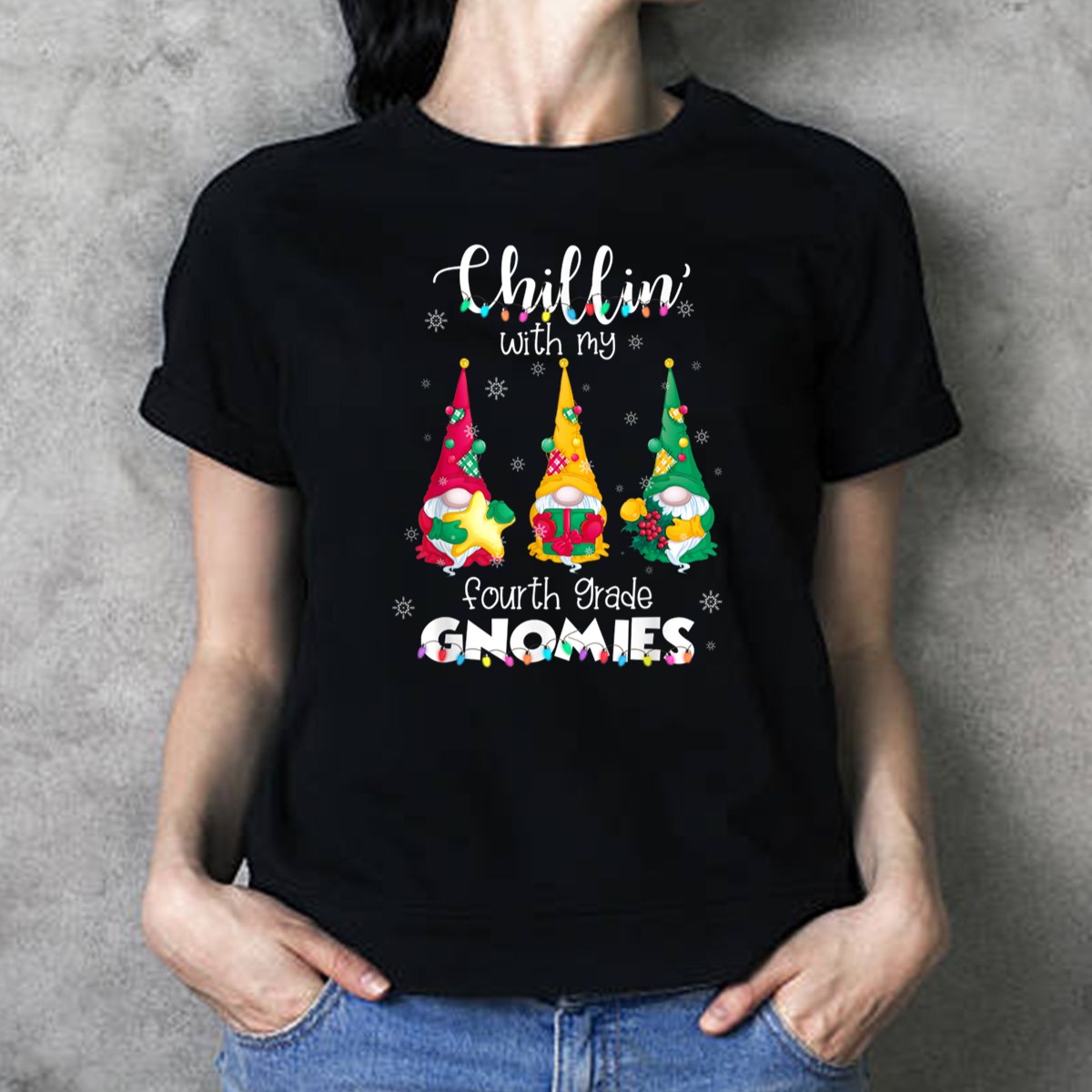Celebrate the joy of teaching and the festive spirit with our “Chillin With My Fourth Grade Gnomies” T-shirt! Perfect for educators who want to spread cheer during the holiday season, this fun and playful design features adorable gnomes surrounded by twinkling Christmas lights. Whether you’re in the classroom, at a themed event, or enjoying a casual day out, this shirt is sure to bring smiles and compliments from students and peers alike. Made for comfort and style, it’s a must-have for any teacher’s wardrobe!